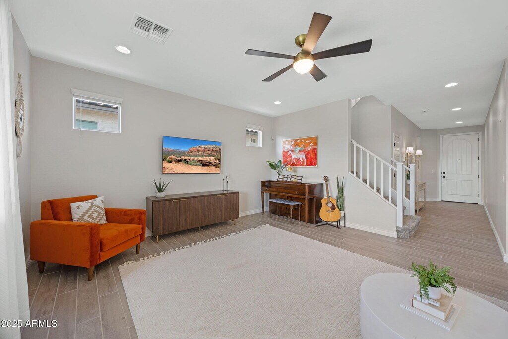 HIGHLY UPGRADED Taylor Morrison Paisley model is move-in ready and filled with extensive upgrades. With 4 bedrooms,3 full baths,and an airy upstairs loft,it blends style and function. The kitchen features quartz counters,stainless steel appliances,a large island,and ample storage. A full bed and bath downstairs are ideal for guests or an office. Upstairs,enjoy a spacious loft,laundry room,and a serene primary suite with dual vanities,a walk-in shower,and mountain views. The private backyard is designed for relaxing and entertaining,with turf,a pergola,a fire pit area,and stunning Arizona sunsets. Your future home is waitinglet's make it happen.