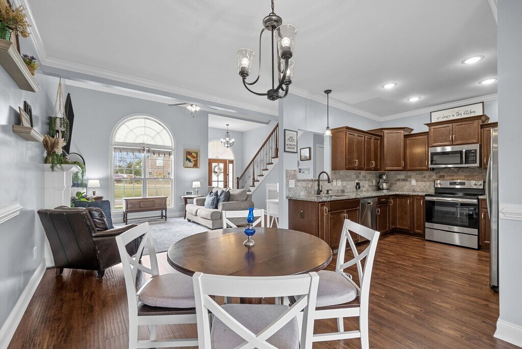 This spacious four bedroom, two and a half bath home offers an unbeatable location just minutes from restaurants, shopping, I-24, and more! Enjoy an open floor plan featuring a welcoming living room with a cozy fireplace and an eat in kitchen complete with granite counters, stainless steel appliances, and a pantry! The large primary suite is conveniently located on the main level and includes a full bath with a double vanity, soaking tub, and beautiful tiled shower! All guest rooms are generously sized, and the versatile bonus room features a door and closet, and could be fifth bedroom! Outside, you’ll love the covered patio and fenced yard! Pet Rent Scale - Dogs: $25.00 per month - Cats: $35.00 per month