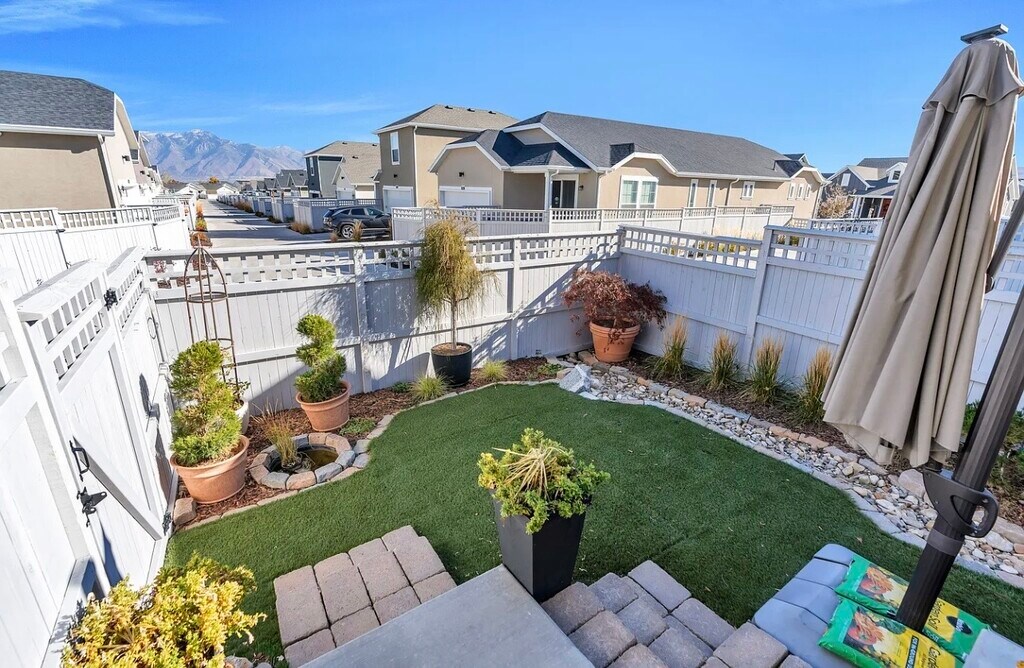 Welcome home to this beautiful 2-story residence in the heart of Daybreak's Springhouse Village, featuring 3 bedrooms and 3 full bathrooms. Springhouse Village is a 55+ community. This means only one resident has to meet the age requirement, and no one under the age of 18 allowed. Amazing perks included- private clubhouse, swimming pool, fitness center, pickleball courts, golf simulator and fitness classes. Step inside to discover a bright and open kitchen with crisp cabinetry and sleek modern appliances, creating a fresh and inviting space for cooking and entertaining. A welcoming formal living room provides the perfect setting for gatherings, while the flex-loft living room offers extra space for office, home gym, hobby area, or cozy movie nights. The inviting front porch is ideal for enjoying the friendly neighborhood atmosphere, and the two-car garage provides plenty of storage and convenience. Out back, you'll fall in love with the amazing patio and intimate fenced yard, complete with a water feature that adds a touch of serenity to your outdoor living. The grill and umbrella are included, making it easy to move right in and start enjoying weekend barbecues or peaceful evenings under the stars. Located close to Linear Park and with quick access to Mountain View Corridor, this home combines comfort, style, and location in one perfect package. Don't miss your chance to live in one of Daybreak's most desirable areas-where community, comfort, and convenience come together beautifully.