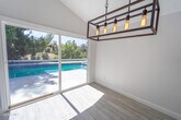 Welcome to a truly special opportunity in the highly sought-after Porter Valley Country Club community--where comfort, flexibility, and resort-style living come together in one exceptional home.Perfectly positioned on a rare lot backing directly to the Porter Valley Country Club's 7th green, this stunning 5-bedroom, 3-bathroom residence offers the kind of serene golf course and valley views that are seldom available. From the moment you arrive, the expansive driveway, mature fruit trees, and inviting curb appeal set the tone for what awaits inside.Step through the front door and into a light-filled living room featuring soaring ceilings and elegant plantation shutters, creating an airy and welcoming atmosphere. The formal dining room is ideally situated with views overlooking the sparkling pool--perfect for hosting gatherings or enjoying everyday meals with a scenic backdrop.At the heart of the home is a beautifully remodeled, oversized kitchen designed for both functionality and style. Outfitted with stainless steel appliances, abundant cabinetry, and generous counter space, this kitchen is ready for everything from casual breakfasts to large-scale entertaining.One of the standout features of this home is its incredible versatility. The first floor includes a private bedroom and full bathroom, along with a separate living area complete with its own kitchenette and cozy fireplace--an ideal setup for multi-generational living, guests, or even a private retreat space.Additional conveniences include an indoor laundry room and direct access to the 2-car garage.Upstairs, the spacious primary suite is a true sanctuary. Wake up to breathtaking valley and golf course views and step out onto your expansive private balcony to enjoy morning coffee or evening sunsets. Three additional guest bedrooms are thoughtfully arranged, sharing a full hall bathroom. One of the bedrooms features a charming farmhouse-style door that opens to a front-facing balcony, adding character and unique appeal.Step outside and experience your own private backyard oasis. The pool and spa are perfectly positioned to take full advantage of the tranquil golf course setting, creating a peaceful and picturesque environment. A large grassy area offers space for play or relaxation, while the expansive covered patio--complete with two ceiling fans--provides the perfect setting for outdoor dining, entertaining, or simply unwinding year-round.Homes in this premier location, backing to the golf course with this level of space and flexibility, rarely come to market. This is more than just a home--it's a lifestyle opportunity you won't want to miss.