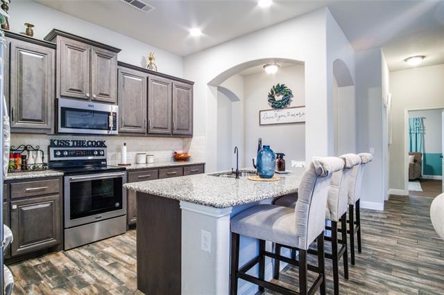 This beautifully upgraded home in Live Oak Creek has been meticulously maintained and is move-in ready. Featuring 4 bedrooms, 2 full baths, and a versatile flex room ideal for a home office, playroom, or second living area, the thoughtfully designed open floor plan offers both functionality and comfort for modern living. The spacious kitchen showcases 42-inch maple cabinetry, stainless steel appliances, a large island with a deep sink, and a reverse osmosis system, all seamlessly overlooking the expansive living area, perfect for entertaining or everyday living. Elegant ceramic wood-look tile runs throughout the home, offering durability with a warm, upscale finish. Step outside to a covered patio and enjoy the generous backyard space, ideal for relaxing or hosting gatherings. Residents of Live Oak Creek enjoy exceptional community amenities including a resort-style pool, picnic areas, soccer field, scenic walking trails, and playgrounds designed for an active and connected lifestyle. Refrigerator is included with the lease.