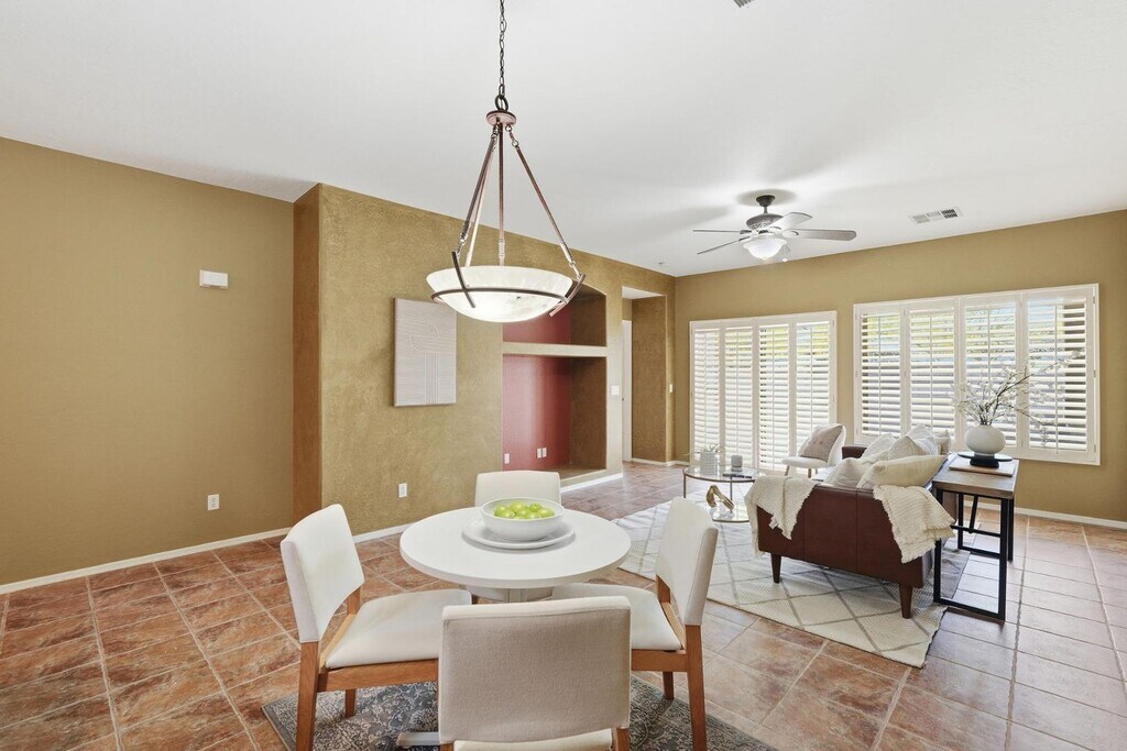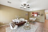 Immaculate Gated Sanctuary in Fountain Hills! This A+ contemporary townhome welcomes you with a delightful covered patio and a warm,designer-painted interior. Tastefully finished with 13'' earth-tone tile throughout,the split-bedroom floor plan is bathed in light via a wall of windows adorned with plantation shutters. The gourmet kitchen features warm tones,stainless steel appliances,a walk-in pantry,and a breakfast bar overlooking the living/dining great room. Pet lovers will appreciate this pet-friendly residence,perfectly situated directly across the street from the dog park! Step outside to a private yard with pavers and room for a garden. Ideally located next to the heated pool with only one common wall and a 2-car garage. Walking distance to the world-famous Fountain.