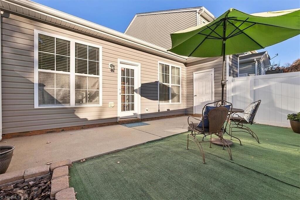 Property Id: 2419505 Amazing ONE LEVEL end unit townhome in popular Kenross at MacIntosh on the Lake! SOARING ceilings give such and open and airy feeling! Lovely bay window in the living room and the Dining space! Tons of streaming Light! Engineered hardwood flooring in the main level living spaces! HUGE Kitchen with cabinets galore! This spacious kitchen also has soaring vaulted ceilings! Primary bedroom has amazing, vaulted ceilings and overlooks the backyard space with wooded views. There is a front bedroom and a middle 3rd bedroom currently being utilized as a home office space! Patio in back spans the length of the unit and has a "year round" artificial green space! Great privacy fence! Must see this updated unit that Sparkles inside and out! Conveniently located literally minutes from I40/I85. Shopping, restaurants nearby!