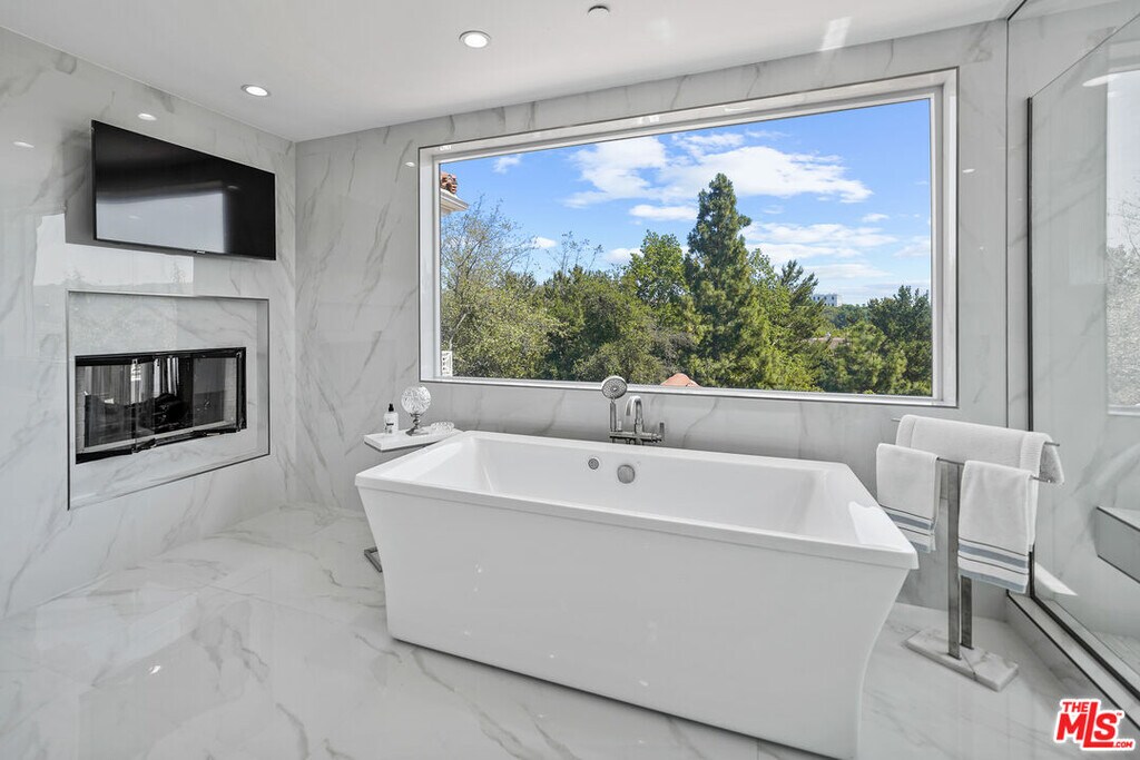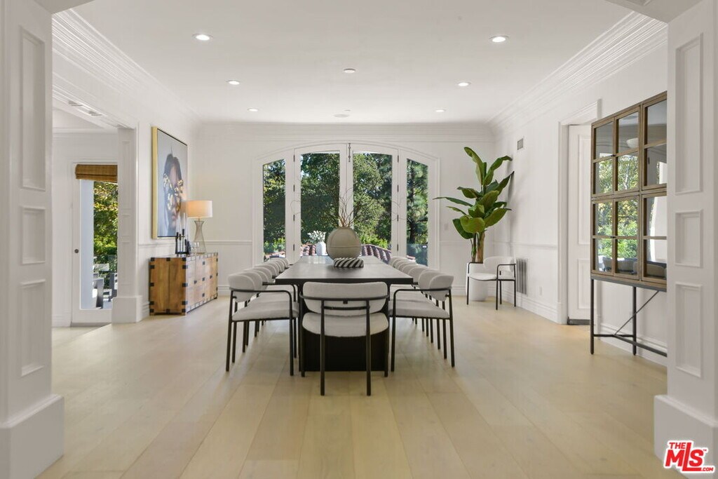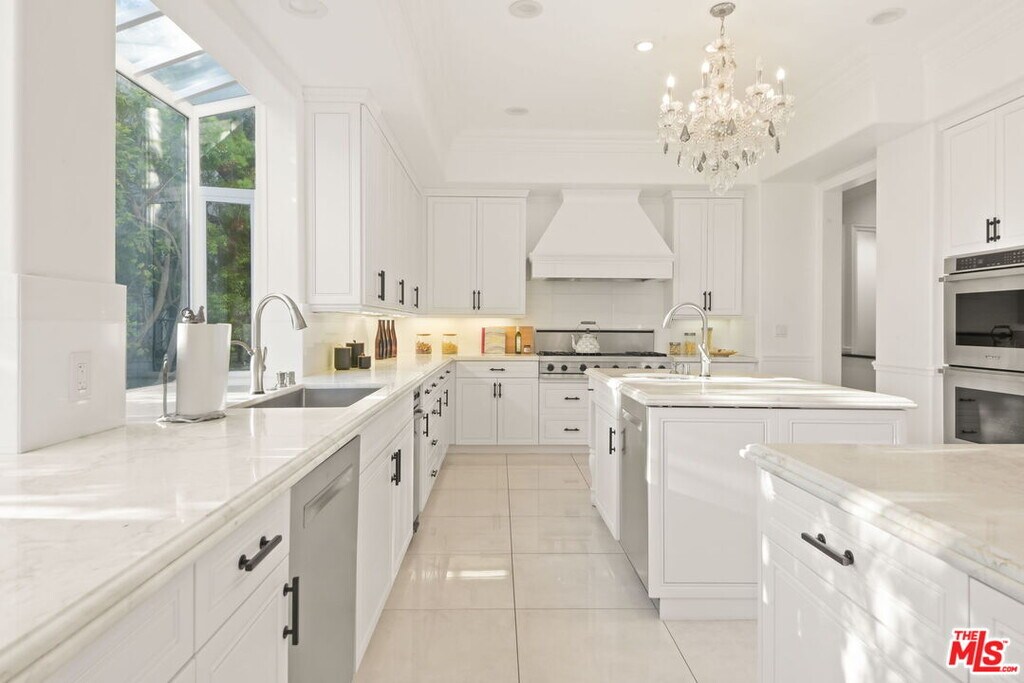 Rare opportunity to live in the highly sought after and exclusive 24-hour guard gated community of Bel Air Crest.This contemporary Mediterranean is hidden at the end of a quiet Cul-De-Sac, independently gated driveway providing more parking space in addition to amble street parking as there are only houses on one side of this street. Home is adjacent to the community greenbelt area providing the upmost in privacy while still enjoying views of nearby MountainGate Country Club golf course and tree top greenery.Stately impressions are made when entering this 3-story estate. Leaded glass double doors lead into the foyer where you are met with soaring ceilings and a glass cupola dome, flagged by a double winged staircase exuding elegance. Seamlessly flowing into the formal dining room with French doors leading out to a 1,000 sq ft plus balcony overlooking the backyard and pool. The main level also boasts a gourmet kitchen, family room with fireplace, living room with fireplace, powder room and luxurious office space with built in bookshelves and a balcony. The upper level features an exquisite primary suite retreat with a private balcony, wet bar, double sided fireplace, steam and sauna in the newly renovated his and hers bathrooms and closets. There are 4 additional en suite bedrooms, one of which has its own private staircase entrance. The Garden level has 2 additional en suite bedrooms, a home theater, living/dining area with built in bar, wine cellar, gym, pool bathroom with shower, and laundry room with both indoor and outdoor access from the garden. The backyard is an entertainers dream with an additional 1,000 square feet covered patio complete with ceiling heat lamps, a built in BBQ and bar area, covered gazebo and beautifully redone pool and adjoining spa. Outdoor living in California at its best with these large entertaining areas surrounding the pool in addition to the outdoor balcony on the main floor. The community of Bel Air Crest offers 5 tennis courts, basketball courts, a dog park, playground and a newly renovated clubhouse with a well-equipped gym, meeting room, lounge space and kitchen. MLS# 25619613