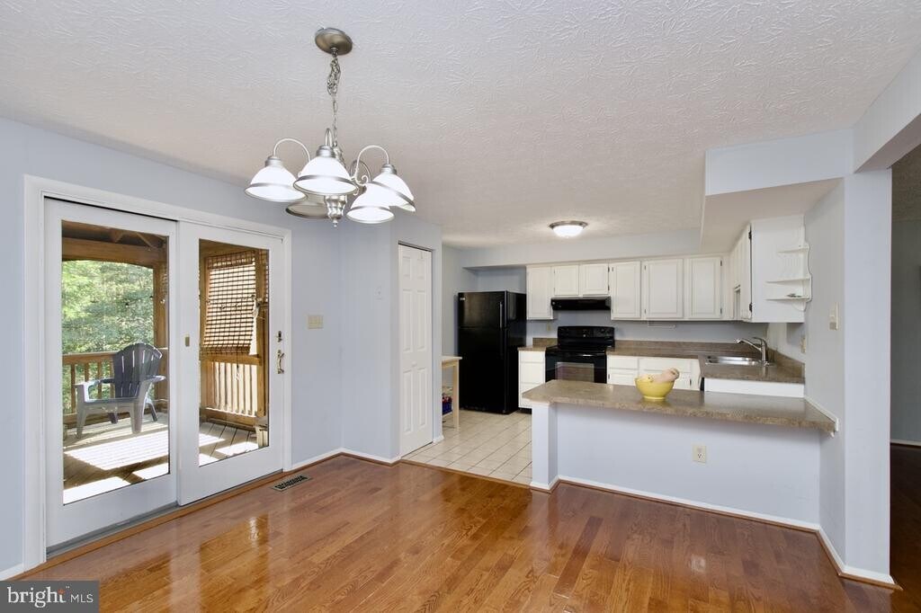 Nestled in the woods, you will find this spacious end unit town home with an open floor plan. Large eat in kitchen with access to a screened in porch off the wooded backyard with a nature trail for walks in the woods. The main level of this home boasts gleaming hard wood floors. Upper level has 3 bedrooms and two full baths. Bedrooms offer spacious closet space. Lower level has a large open recreation room bringing in full daylight and access to the fenced backyard. For your convenience, you will find a half bath in the basement along with plenty of storage and laundry in the basement.