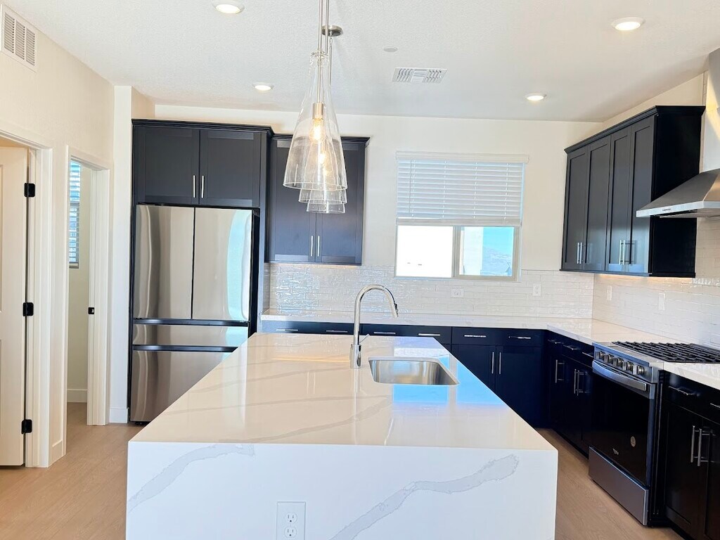 Brand new 2025 home – never lived in, located in the highly desirable West Summerlin community. This stunning three-story home offers over $70,000 in designer upgrades and feels like a custom build. Featuring 4 bedrooms, 3.5 baths, and a 2-car garage with epoxy floor. The open and spacious floor plan includes an upgraded gourmet kitchen with quartz countertops, upgraded cabinets, stainless steel appliances, and designer backsplash. The large great room opens to a private balcony with spectacular mountain and Strip views. Beautiful upgraded tile flooring throughout the kitchen and great room, and new carpet in all bedrooms. The primary suite offers a luxurious bath with dual sinks, walk-in shower, and walk-in closet. Additional features include upgraded doors, lighting, and window coverings. This exceptional property combines style, comfort, and modern living in one of Summerlin's most desirable locations. Rent includes sewer and trash. One-year lease. Brand new 2025 home – never lived in, located in the highly desirable West Summerlin community. This stunning three-story home offers over $70,000 in designer upgrades and feels like a custom build. Featuring 4 bedrooms, 3.5 baths, and a 2-car garage with epoxy floor. The open and spacious floor plan includes an upgraded gourmet kitchen with quartz countertops, upgraded cabinets, stainless steel appliances, and designer backsplash. The large great room opens to a private balcony with spectacular mountain and Strip views. Beautiful upgraded tile flooring throughout the kitchen and great room, and new carpet in all bedrooms. The primary suite offers a luxurious bath with dual sinks, walk-in shower, and walk-in closet. Additional features include upgraded doors, lighting, and window coverings. This exceptional property combines style, comfort, and modern living in one of Summerlin's most desirable locations. Rent includes sewer and trash. One-year lease.