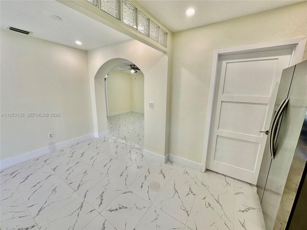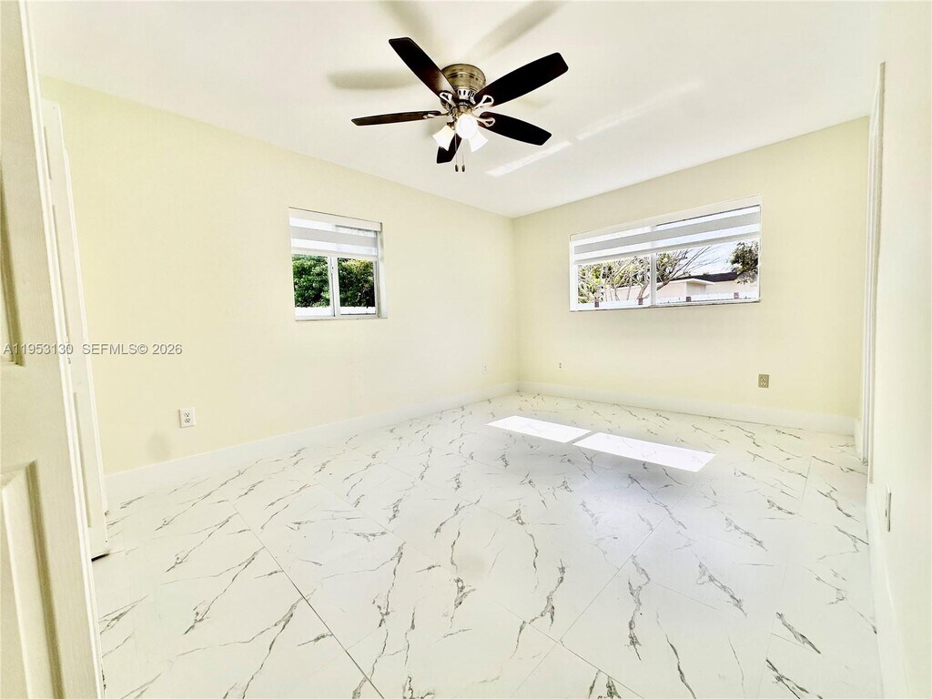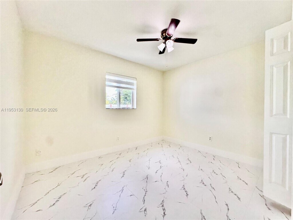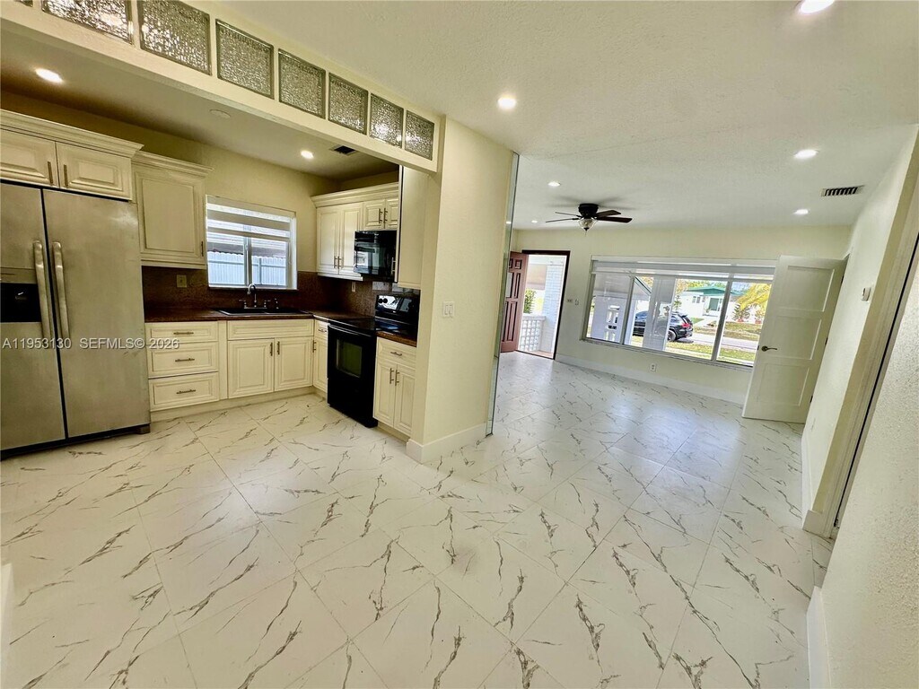 Beautifully remodeled one-story rental featuring fresh paint, stunning marble-style laminate flooring, and modern recessed lighting throughout. This home offers a private driveway, covered carport, and a welcoming walkway leading to the front entrance. Enjoy a spacious fenced backyard with sleek white aluminum fencing, lush tropical trees, plenty of grass, and a covered patio terrace—perfect for relaxing or entertaining. A kids’ playground and swing set are included. The interior boasts new zebra blinds, a smart thermostat, washer and dryer, and a kitchen equipped with a refrigerator featuring an ice maker and water dispenser. Bathrooms include tubs with handicap rails and rainfall shower heads for added comfort and accessibility. Each bedroom is generously sized with large closets. NO HOA. Fast approval and move-in ready ASAP. ONLY TWO MONTHS REQUIRED! (First & Deposit) Prime location within walking distance to Miami Heights Elementary and Robert Morgan Educational Center. Close to Eureka Park, Larry & Penny Thompson Memorial Park & Campground, shopping centers, gyms, gas stations, and major attractions including Zoo Miami. MLS # A11953130