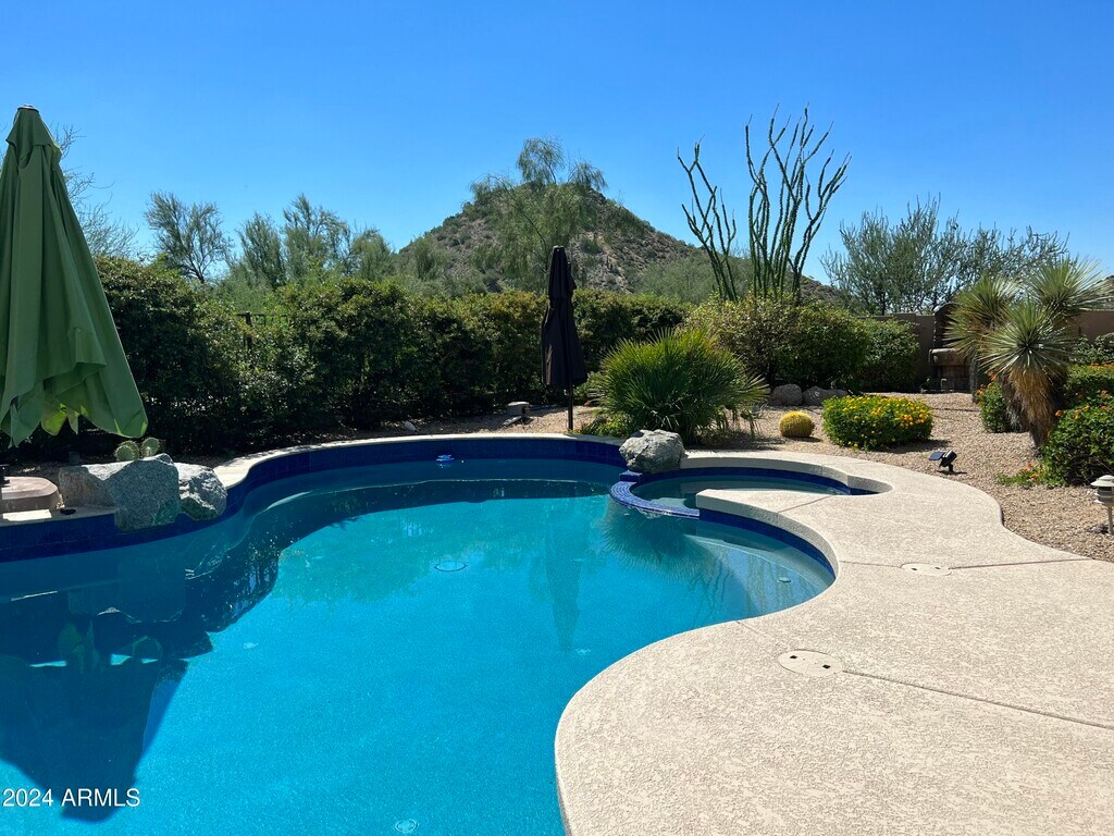 BOOKED 1/6/2026-5/15/2026. Beautifully appointed & highly upgraded vacation rental home comes w/all the bells & whistles! Wonderful Great room layout w/automated retractable wall of windows open to a stunning resort-like backyard w/heated pool/spa,fabulous mountain views and a built-in BBQ,all for your enjoyment. Smart home w/ iPad controls located t/o the home,w/ remote controlled blinds in various rooms. All bedrooms feature king-size beds and flat screen TVs. You will appreciate the spacious south-facing backyard providing sunny days and starlit nights. Home features ideal split floorplan and is complimented w/ luxurious furnishings & all of the creature comforts to ensure your stay is memorable. Near hiking,biking,golfing,great dining & shopping. Seasonal rates $9,500-$11,500.