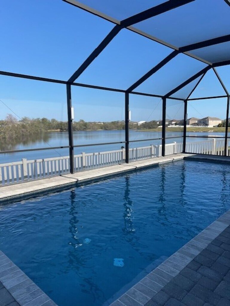 Beautiful, spacious two-story home. Kitchen has granite counter tops, including Dish washer, stove, stove hood, microwave, disposal, refrigerator, back splash, open floor, dinning and family connects with the screened porch and pool with a summer kitchen that has granite counter tops, propane gas BBQ, single stove, wine cooler, patio refrigerator with spectacular and relaxing view to the pond. Half bathroom strategically located on the first floor with access from inside and outside. Crown molding through the entire first floor. Second floor all wood laminated floorings, bathrooms with granite counter tops and tile floors, all of the bedrooms have carpet. Spacious master bedroom with garden tub and spacious walking closet that conveniently connects with the laundry room. Community amenities include community pool, clubhouse, mailboxes, playground and dog park. Applicants must have a credit score of 600 or better and must make 3x the rent in income. All adults must apply separately. Pets must be approved prior to applying. Rent and Administrative Fee of $125 is due on the day of move in. Move ins on or after the 15th of the month, the next month's rent will be required upon move in.