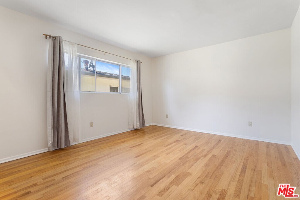 Large updated top floor bright 1 bedroom 1 bathroom with balcony in a prime Brentwood location. Polished wood floors throughout the open floor plan living spaces. The unit comes with air conditioners in each room, an updated kitchen with dishwasher and bathroom, 1 car parking, and a private balcony. Great Brentwood location on quiet street close to all of the shops and restaurants on San Vicente, UCLA campus, Santa Monica Beach, and very easy 405 freeway access. The building and the unit are very well maintained and secured with a gate. No pets allowed. MLS# 25584225