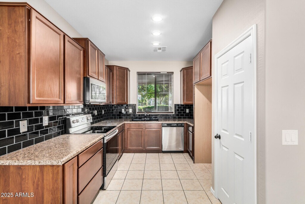 Looking for a perfect rental home? This charming single-level residence in Del Rio Ranch is the one! Offering 3 beds,2 baths,& a 2-car garage. The well-manicured front yard & front porch are just the beginning. The inviting interior showcases tons of natural light,neutral paint,tile flooring in common areas,and soft carpet in bedrooms. Designed for everyday living & entertaining,the seamlessly flowing open layout is sure to impress! The kitchen boasts SS appliances,a pantry,recessed lighting,ample wood cabinetry,and a subway tile backsplash. Enter the primary bedroom to find a full bathroom with a walk-in closet. The perfectly sized backyard,with an extended covered patio & built-in BBQ,is the ideal spot to relax or have a fun gathering. Great Avondale location! Move-in ready!