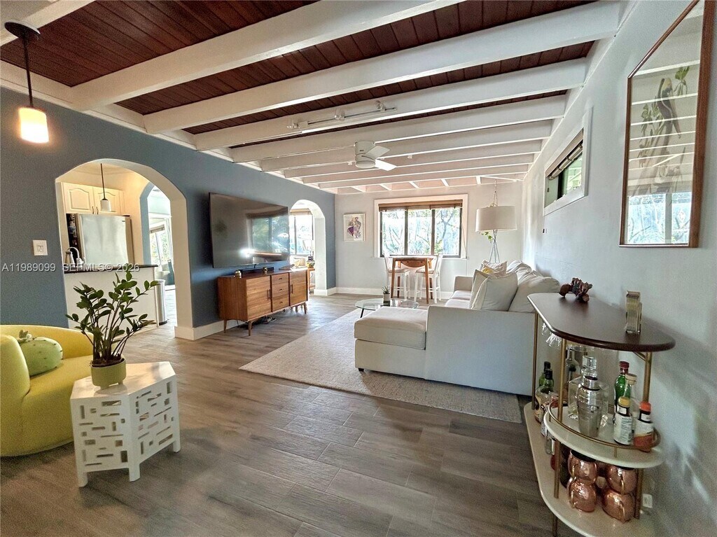 Charming sun-filled 2-bedroom 2-bath home for rent with sizable flex room, which could make for an office, den, or playroom. Modern upgrades include impact windows and doors, porcelain tile, tankless hot water heater, and finished laundry room. Equipped with Ring (security), Nest (a/c), and Elfa (closet/storage) systems throughout. Property features a large outdoor deck - perfect for entertaining - with mature mango, Florida avocado, and coconut trees. Shed, outdoor shower, and alleyway access in rear. Located within walking distance of downtown North Miami, and near Whole Foods, Publix, FIU Biscayne Campus, and Oleta State Park. Available April 11. MLS # A11989099