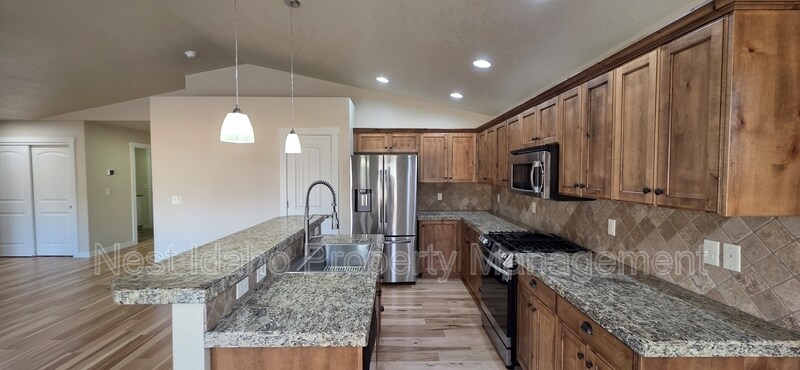 Charming single-level 3-bedroom, 2-bath home featuring hardwood floors, a modern kitchen with granite countertops and stainless steel appliances, and a family-friendly layout designed for comfortable everyday living, minutes from Spalding Elementary and the Villages of Meridian. *Flat charge for utilities 250/mo in addition to rent covers water, electric, gas, sewer & trash* Shop is not included and considered separate for private use* Resident responsible for lawn care* No smoking, pets considered with additional monthly fee. Highlights Single-level home – ideal for family living Split 3 bedrooms / 2 bathrooms Hardwood floors Kitchen with granite countertops & stainless steel appliances with gas stove top. Open, functional living areas Bright and welcoming interior full of natural light Private fenced yard with large storage shed 3- Car garage with water softner and entire home water filtration system Convenient location near schools, parks, and shopping Attention: Nest Idaho schedule's all showing's based solely upon applications received and reviewed for consideration, applications are available on our website nestidaho (dot) com where you may then go to rental search, scroll down to locate property then to the right find the option "submit a application".