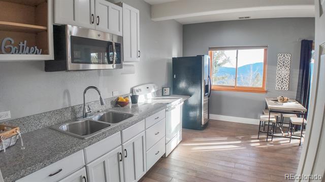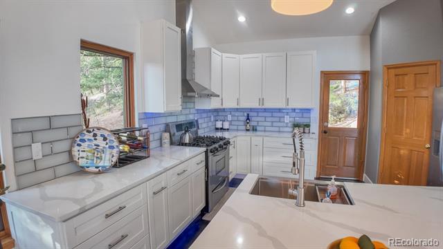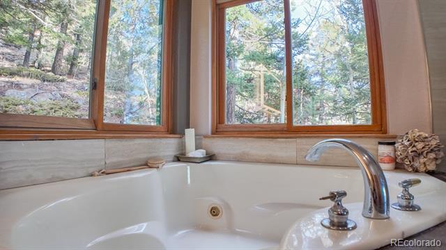 Beautifully remodeled partially furnished 4 bed 3 bath Conifer home with panoramic mountain views, upgraded finishes and a fully finished walkout ADU or mother in law style lower level that gives you rare flexibility. With 2,473 square feet of living space, the main level feels bright and open with hardwood floors, large windows that frame Pikes Peak on clear days and a chef inspired kitchen featuring brand new white cabinets, quartz countertops, stainless steel appliances and a commercial grade oven and hood. The spacious primary suite offers its own mountain view and a spa like five piece bath, and the main floor layout includes two bedrooms and two baths for easy everyday living. The walkout lower level lives like its own apartment with a separate entrance, full second kitchen, large family room or eating area, two garden level bedrooms full of natural light and views, a full bath, laundry with washer and dryer and direct access to the hot tub. Outside, a brand new Trex wraparound deck captures sunrise to sunset views and overlooks a natural wildlife path that deer and elk use, while the fenced yard and property line stretching roughly 90 feet back create a private mountain retreat. Built with solid 2x6 framing and serviced by municipal water, sewer, gas and electric, the home is designed for low maintenance mountain living. Practical features include a south-facing driveway that melts quickly in winter, a fire hydrant about 100 feet away across the street and a location just 2 miles from Hwy 285 on a school bus route that is among the first to be plowed. You are about 10 minutes to King Soopers, roughly 25 minutes to Golden and about 40 minutes to Downtown Denver, plus you have an attached 2 car garage for easy parking and storage. This home combines modern finishes, big views, flexible multigenerational space and a highly convenient Conifer location in one complete package. Single Family Residence MLS# 2770800