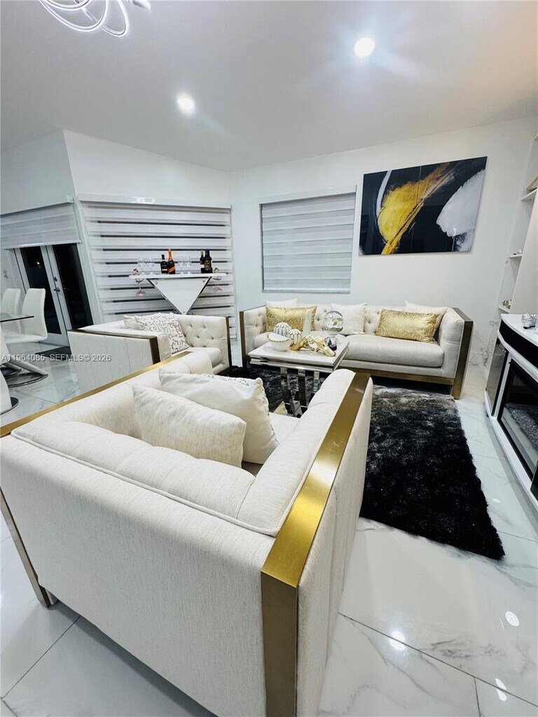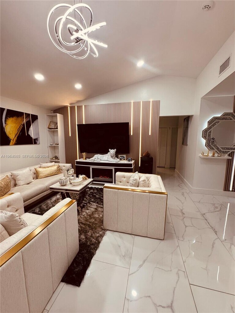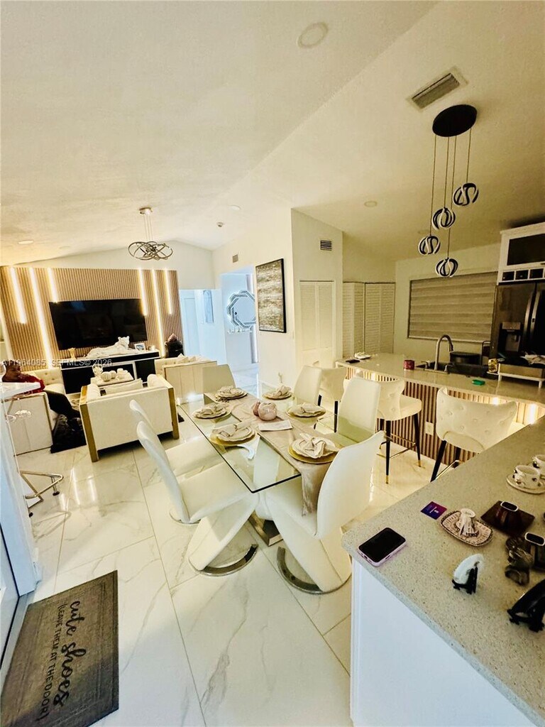 Beautiful and spacious 3 bedrooms home in the center of Pembroke Pines. Designer porcelain tile, zebra window treatment, open custom kitchen with full granite counters, wood cabinetry. Master bathroom's with floating cabinets and elegant cultured marble vanity tops, designer faucets and lighting. Covered patio. and spacious yard, 2 parking driveway and garage, additional guess parking. Clubhouse, community pool and much more. Secured and beautiful well maintained community. MLS # A11964085