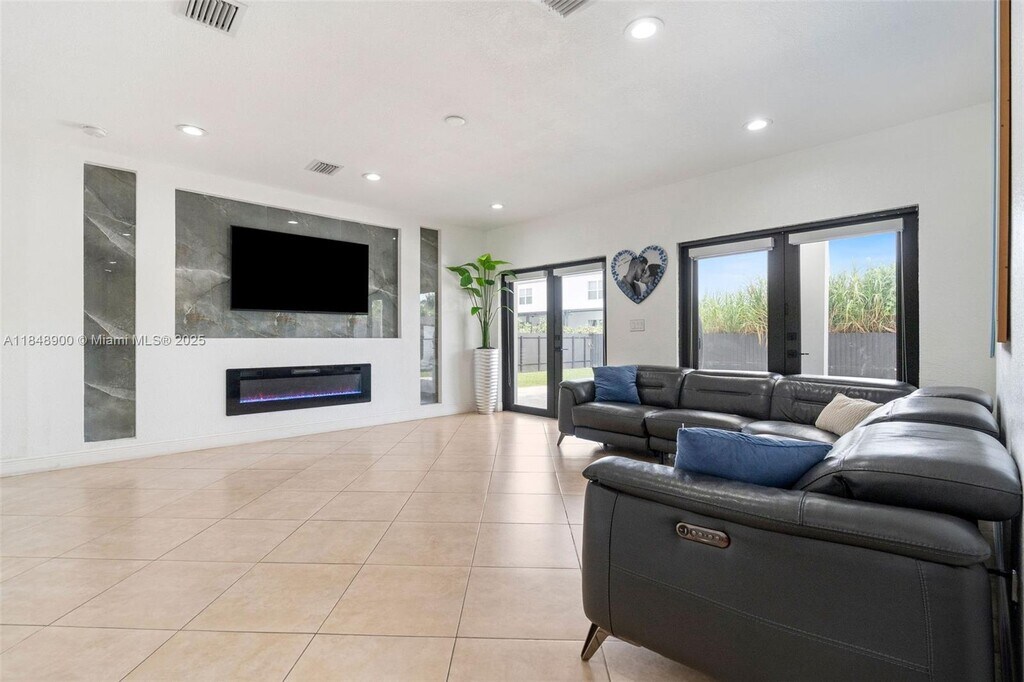 Nestled in a quiet neighborhood with minimal neighbors, this stunning 2012-built home features 5 bedrooms + den, 4.5 baths, and sits on an oversized 11,200 sqft lot. Filled with natural light, the home boasts impact windows throughout, a massive master suite with spa-like bath, a first-floor guest room or office, and an upstairs laundry. Enjoy a spacious 2-car garage, ample parking, and a spectacular terrace opening to a huge backyard—perfect for entertaining or relaxing. Ideally located near shopping, schools, and major highways.