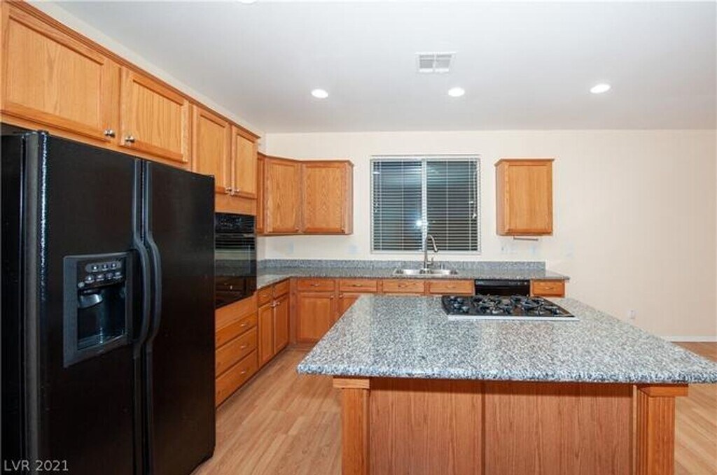 Rehab in progress. ETA 4/11/2026. Step into this inviting two-story home that blends comfort, functionality, and classic style. The exterior showcases charming curb appeal with desert-friendly landscaping, mature trees, and a welcoming front entry. A spacious driveway leads to the attached garage, while the private walkway adds a touch of character to the approach. Inside, you’re greeted by a bright and open layout featuring warm wood-look flooring and neutral tones throughout. The kitchen is the heart of the home, offering abundant cabinet space, sleek granite countertops, and a central island with a built-in cooktop—perfect for both everyday meals and entertaining. Black appliances, including a double oven and side-by-side refrigerator, provide a modern contrast to the rich cabinetry. A large window above the sink brings in natural light, creating an airy and inviting workspace. The open-concept design allows the kitchen to flow seamlessly into the living and dining areas, making it ideal for gatherings. Recessed lighting throughout enhances the clean, contemporary feel, while the nearby arched entryway adds architectural charm and leads to additional living space and the staircase. Upstairs, you'll find well-sized bedrooms and a layout designed for privacy and comfort. With its combination of functional design, stylish finishes, and low-maintenance outdoor space, this home offers a perfect balance of practicality and charm. Perfectly positioned near Downtown Summerlin, community parks, and a short drive brings you right to Red Rock Canyon. We are looking for 650 credit, 5x income and no less than 2 landlord references.