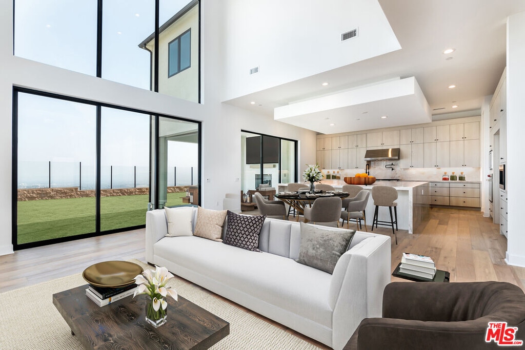 Experience modern luxury in this stunning 5,490 sq ft estate located in the exclusive, guard-gated Westcliffe community of Porter Ranch. Completed in July 2023, this 5-bedroom, 6-bathroom home features a sleek open floor plan, soaring two-story foyer with floating glass staircase, a spacious loft, and an incredible multi-generational suite- a private living space perfect for extended family, guests, or live-in support. Thoughtfully designed for comfort and independence, the suite includes its own living room, private entrance, full bathroom, walk-in closet, and built-in appliances, creating a true home within a home. At the heart of the main living area is a gourmet chef's kitchen, showcasing top-of-the-line Wolf appliances, an expansive Taj Mahal quartzite waterfall island, upgraded custom cabinetry, and a sleek pot filler. The home sits on a premium lot with unobstructed panoramic views of the city and mountains, with no homes directly across the street offering unmatched privacy and breathtaking sunrises and sunsets. Designed with exquisite finishes including custom stone bathrooms, upgraded lighting, oak floors, 2 sets of stacking glass doors and expansive glass windows, and a 72 color-changing crystal fireplace, every inch of this home exudes modern elegance. The primary suite is a luxurious retreat with a large sitting area, colossal walk-in closet, and spa-style marble bathroom. Additional features include surround sound, state-of-the-art home tech, fully paid solar, a three-car garage, and a spacious backyard with an outdoor fireplace perfect for entertaining or relaxing under the stars. Conveniently located near The Vineyards shopping center, Whole Foods, AMC, award-winning schools, and the 118 freeway, this is a rare opportunity to live in one of Porter Ranch's most prestigious and breathtaking estates." MLS# 25589339