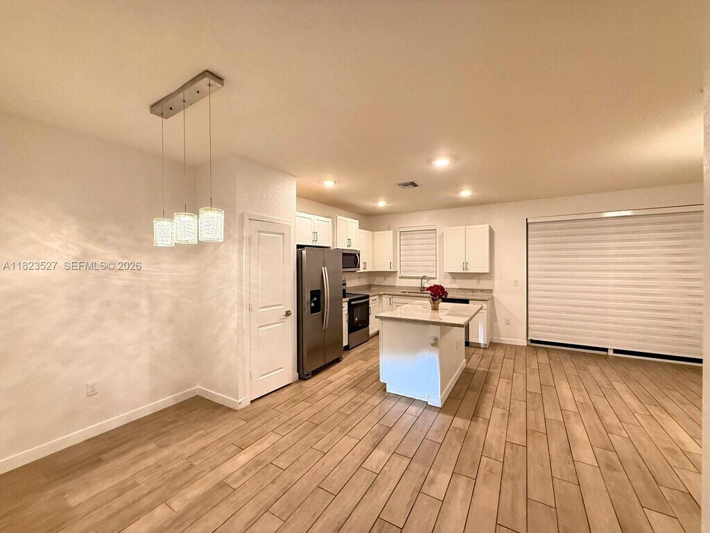 Beautiful townhouse located in Town at Seascape in Homestead. 4 Bedroom and 3 bathrooms, with 1 bedroom in ground floor with a full bathroom. Kitchen completely modern with granite counter top and white wood cabinets. Tile downstairs and laminated upstairs. Gated community with security patrol. Community pool. Don't miss out this opportunity to live in this Comnunity. MLS # A11823527