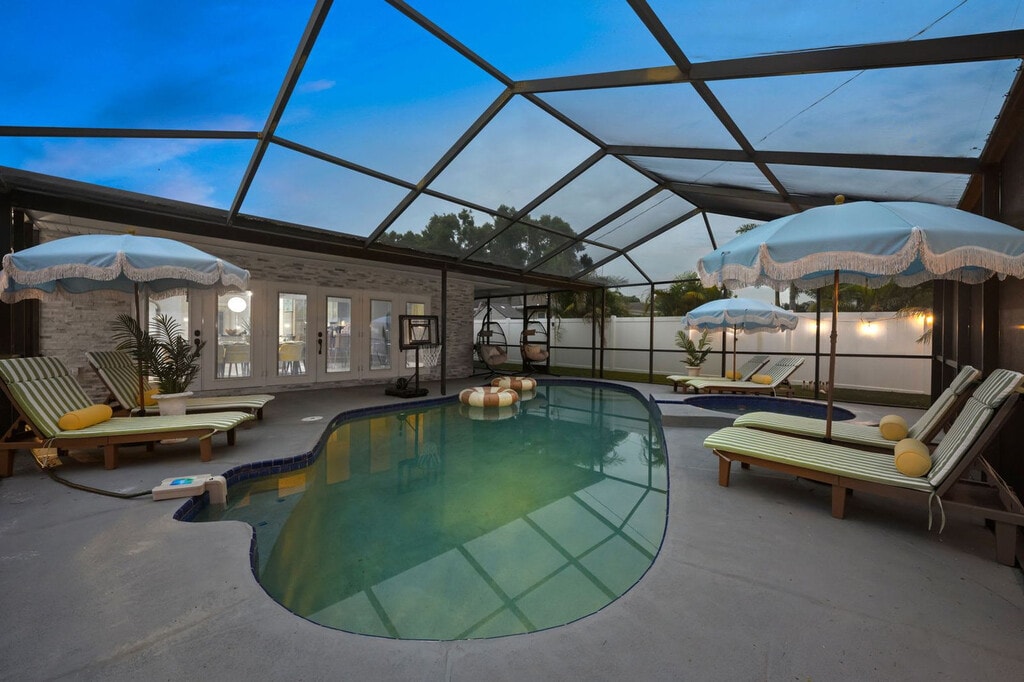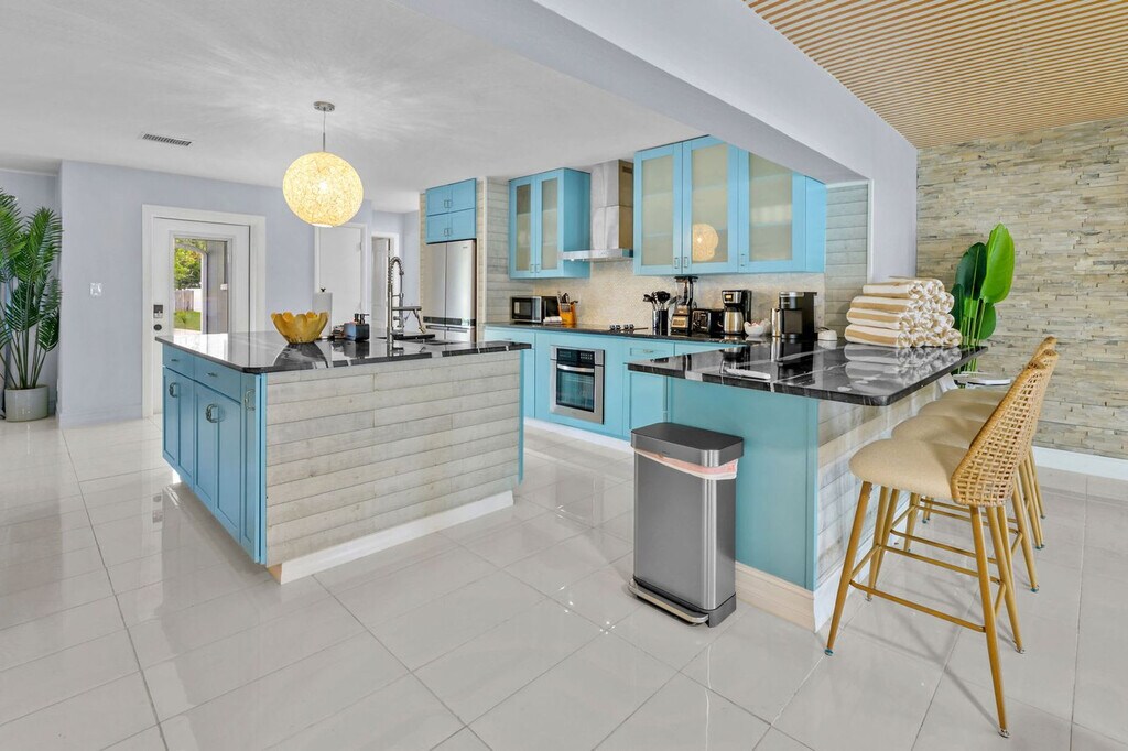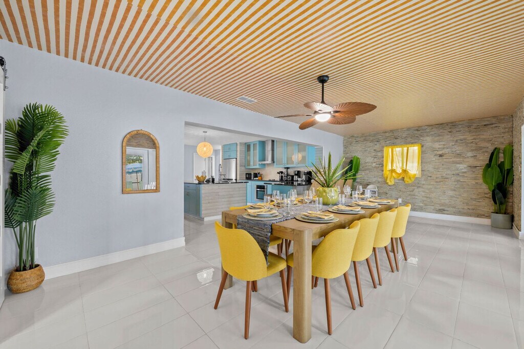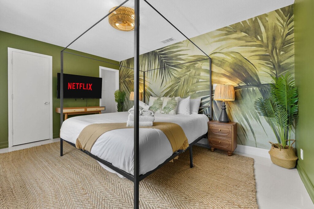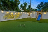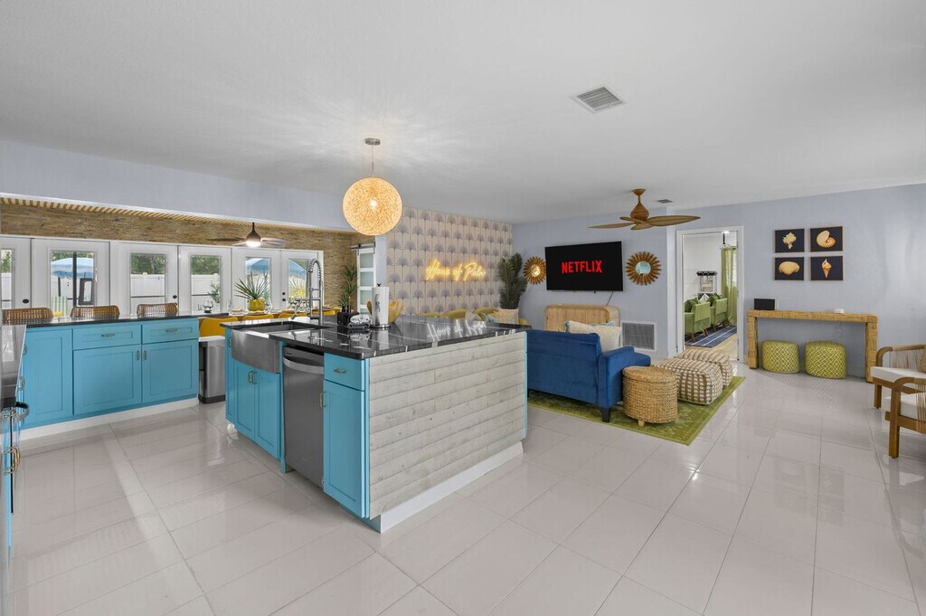 This 4-bedroom home in Seminole, FL, offers everything you need for an amazing vacation. With ample space to sleep 14 guests, this property features a private pool, kids' playground, outdoor patio and dining area, BBQ grill, fire pit, and more. The home includes a bunk room with a slide and movie theater, ensuring entertainment for all ages. Enjoy the fully stocked kitchen, TVs in each bedroom, and ample parking for your convenience. Welcome to your ultimate family retreat in Seminole! Located just minutes from the Gulf Coast's sparkling beaches, this spacious 4-bedroom, 2-bathroom home is perfect for families or groups. Inside, you'll find an inviting open layout with a fully stocked kitchen, cozy living spaces, and restful bedrooms designed for relaxation. Kids will love the custom bunk room with a built-in slide and private movie theater. Outside, enjoy a private pool, full kids’ playground, mini putt-putt course, and more. Up to 2 dogs are allowed for $125 per stay, but no cats please. Parking is available in the driveway for up to 4 cars, and street parking is allowed. If you're interested in a long-term stay, please inquire about availability. Explore nearby attractions such as the Florida Botanical Gardens, St. Pete Pier, and The Dali Museum. Enjoy family-friendly activities at the Great Explorations Children’s Museum and Treasure Island Fun Center. Dining options include Salt Rock Grill, Clear Sky on Park, The Original Crabby Bill’s, Angry Pepper, and Slyce Pizza Bar. Renting a car or using rideshare services like Uber and Lyft are convenient ways to explore the area. Check-in is at 4pm and check-out is at 10am. No parties are allowed, and violations may result in immediate termination of the stay. An exterior camera is installed to monitor the cleaning team for quality and security purposes. Guests must be 25 years or older to book this property. A guest verification process is required within 48 hours of booking confirmation, including signing a rental agreement and providing a valid ID and matching credit card. A non-refundable $60 damage waiver is required, covering accidental damage during your stay if reported before check-out. [SI]