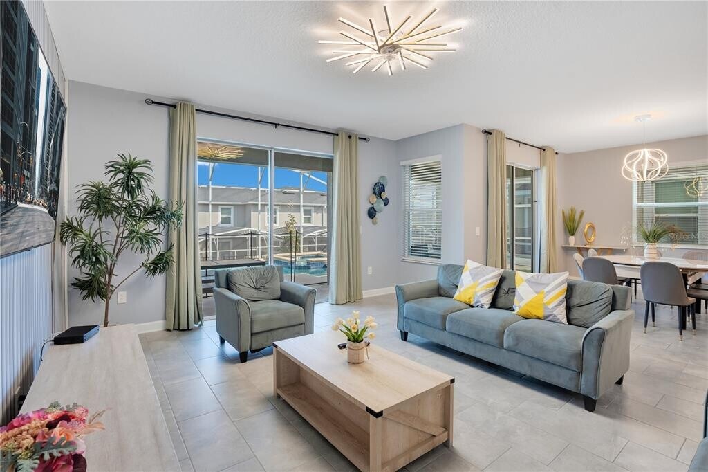 Experience luxury living in this fully furnished,turnkey 6-bedroom,5-bathroom home located in the highly sought-after ChampionsGate Resort. Built in 2023,this nearly new residence features a private heated pool and hot spa within a screened lanai,creating the perfect retreat for year-round enjoyment. Inside,the modern kitchen is designed for both style and function,showcasing high-end cabinetry,granite countertops,stainless steel appliances,and a spacious island. The first floor includes a convenient bedroom,while the second floor offers a spacious loft,a luxurious primary suite with soaking tub,walk-in shower,and dual sinks,plus four additional bedrooms for comfort and privacy. The expansive family/dining room combo and inviting outdoor areas make this home ideal for both entertaining and relaxing. As part of the gated ChampionsGate community,residents enjoy 24-hour guard service and access to world-class amenities,including a championship golf course,elegant Oasis clubhouse,resort-style pool,tennis and volleyball courts,fitness center,and the recently added clubhouse and water park. Located just 10 minutes from Disney,20 minutes from Universal Studios,and 30 minutes from Orlando International Airport,this home offers unmatched convenience to highways,shopping,dining,and entertainment. *Rent includes: lawn care,valet trash service,cable TV,internet,24-hour guard,community pool,and access to recreational facilities. MLS# O6339427