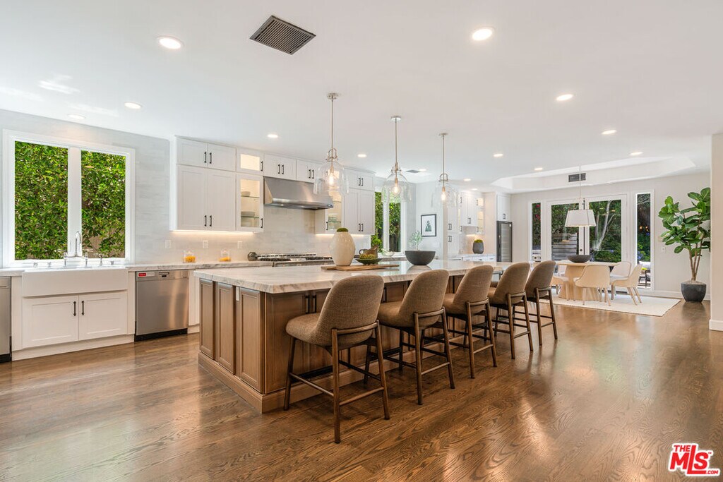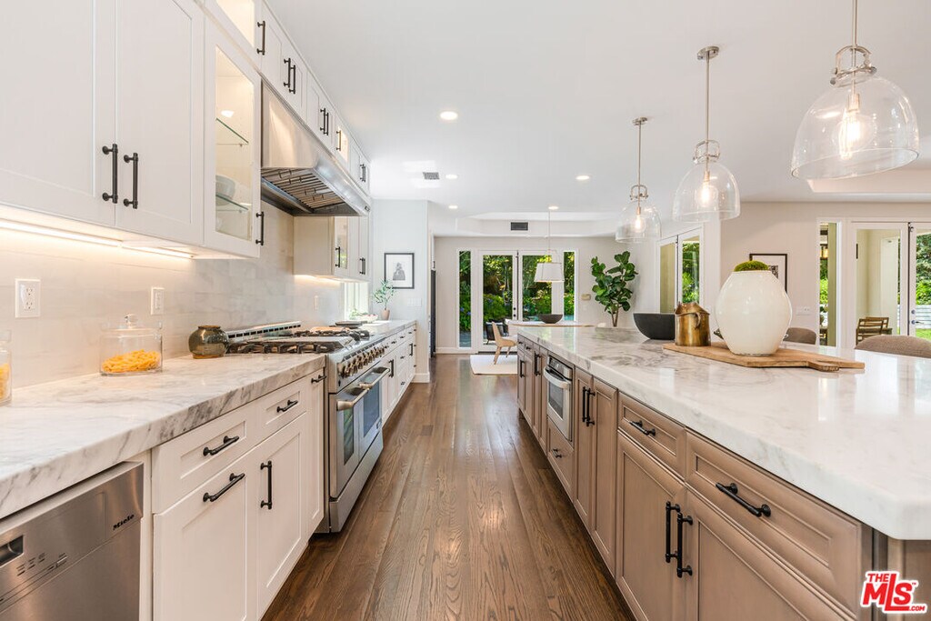 Six Month Lease (or negotiable) available furnished or unfurnished. Beautifully and extensively remodeled and renovated throughout, this stunning residence shows like new. Grand two-story foyer, flooded with natural light, opens onto the formal living room with fireplace and sitting room, with French doors which open to a charming private garden with fountain. The spacious open concept kitchen and family room feature a huge center island with dining bar, dual dishwashers, farmhouse sink, marble slab countertops, 300 bottle wine refrigerator and beverage center, ample storage and pantry plus an intimate junior dining area. The formal dining room is lovely with views out to the lush and private back yard. A bedroom suite, power room and gym/bonus room complete the downstairs. The primary bedroom suite is a retreat unto itself with a fireplace, cozy sitting area, large balcony, huge walk-in closet and an incredible spa-like primary bath with heated marble floors, dual vanities and make up area, large soaking tub and deluxe shower with separate steam room. There are also three additional secondary bedroom suites upstairs plus a roomy and comfortable lounge area, perfect for a study or upstairs family room. The backyard is like a 5-starhotel, with sparkling lagoon pool with spa and waterfall, large grassy area, built-in outdoor barbeque kitchen and heated dining veranda off the kitchen and family room. Smart home features enable one to control home systems and pool from one's phone. Attached two-car garage with 240/50 Amp outlet for electric vehicles offers direct access to the residence. The grounds are gated and private with a large grassy front yard and off-street parking for multiple vehicles. Located in a prestigious N. of Sunset location, close to fine dining, shops and the best of Brentwood, this property is not to be missed. Site & Floor Plan can be viewed in DOCS. Furnished lease price $45,000. Property is also listed FOR SALE at $10,299,950. MLS# 25620897