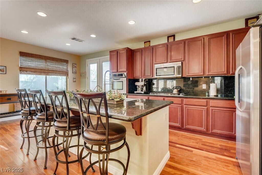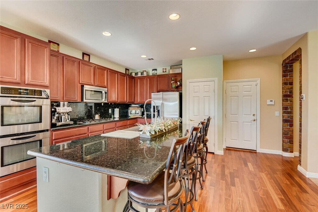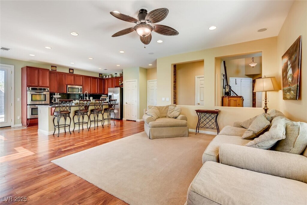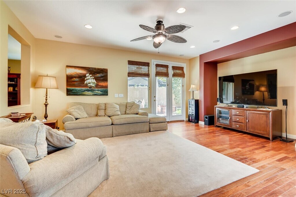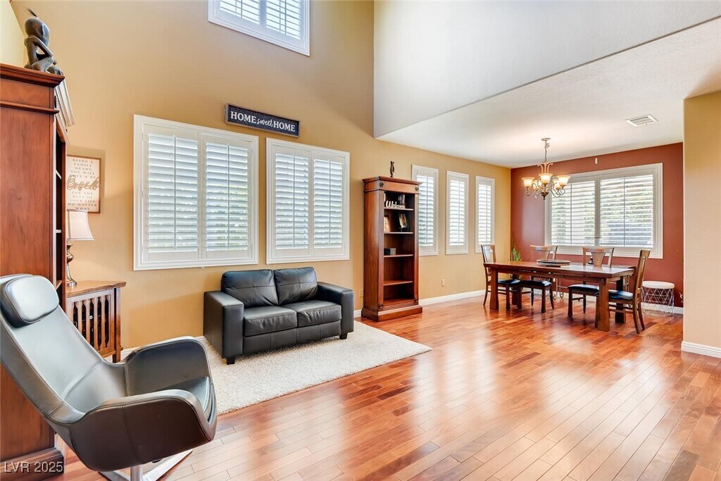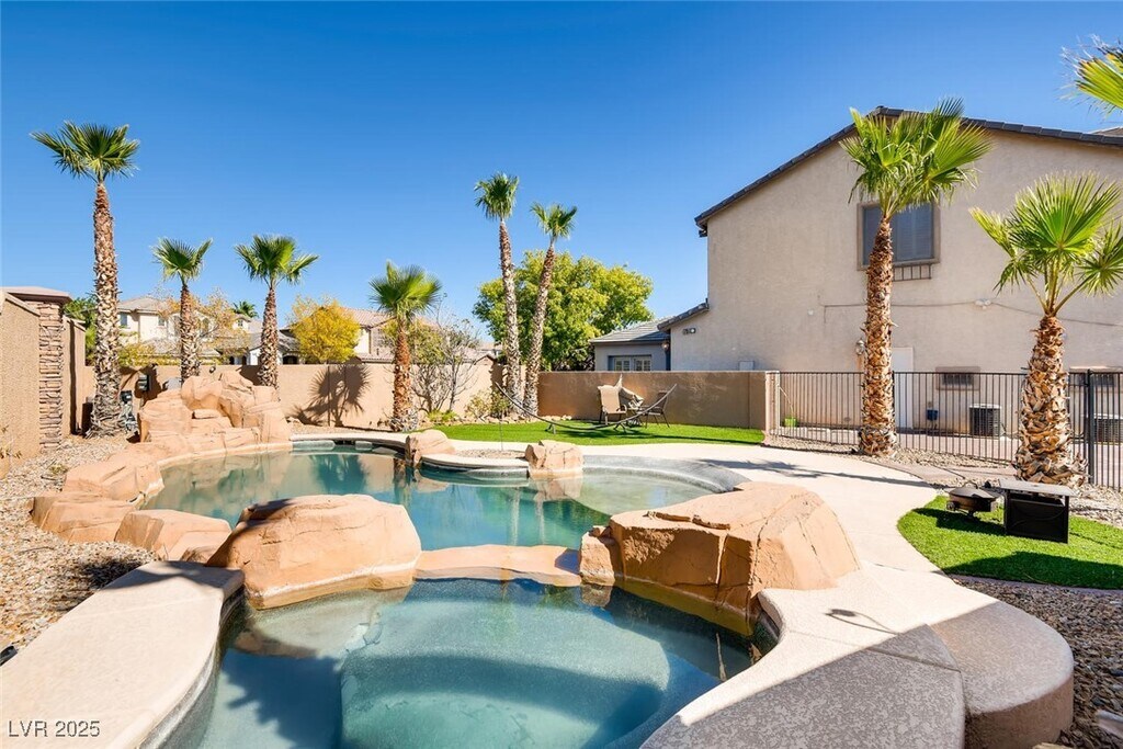 Discover a meticulously upgraded residence nestled near downtown Summerlin. This fully furnished 4BR home offers a luxurious living experience, featuring custom paint and exquisite Mahogany Wood Floors complemented by plush carpeting for added comfort. The kitchen showcases modern elegance with Granite countertops and stainless appliances, perfect for culinary enthusiasts and entertainers alike. Step outside to a beautifully landscaped backyard oasis, complete with a sparkling pool and relaxing spa, ideal for soaking up the Nevada sun or unwinding under the stars. Experience breathtaking vistas with double balconies offering stunning views of the iconic Vegas Strip and majestic Red Rock mountains. Enjoy upscale dining, boutique shopping, and entertainment options, including the renowned Las Vegas Ballpark, all just moments away. Experience the epitome of luxury living in this prime location, where every detail has been thoughtfully curated for your comfort and enjoyment.