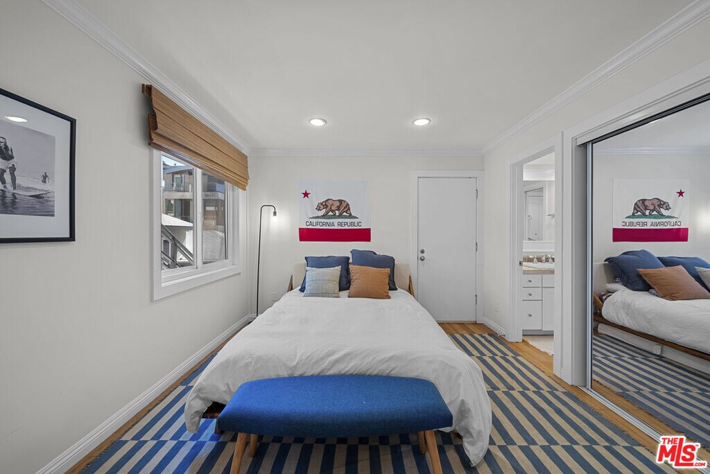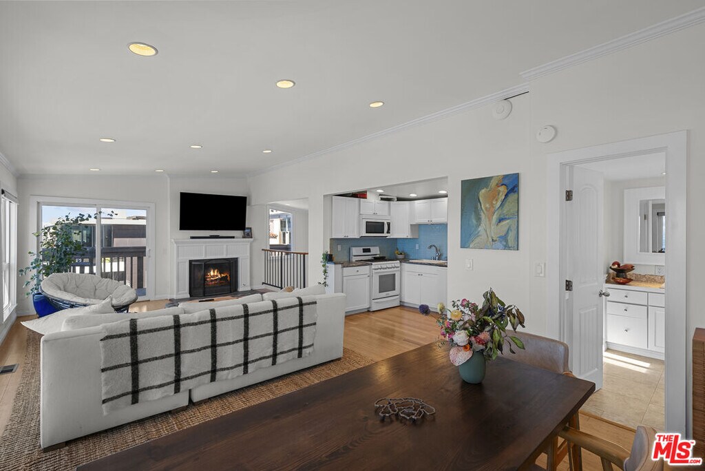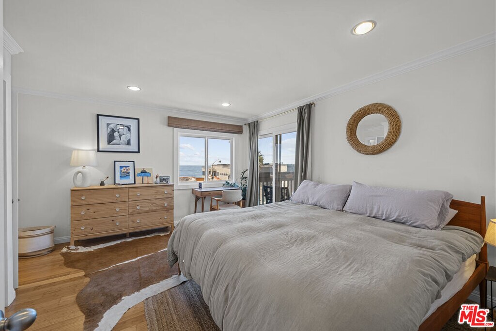 Located in the heart of Manhattan Beach's Sand Section, one block from the ocean, this walk-street home showcases sweeping 180-degree coastline views and outdoor space on every level. This three-level residence spans approximately 2,700 square feet with three bedrooms and three bathrooms and centers daily life around an oversized first-floor patio complete with a fire pit for effortless indoor/outdoor living and entertaining. Upon entry, a formal foyer leads to a comfortable living space with fireplace and french doors open to the walk-street patio with ample seating and direct ocean outlooks. In addition, the main floor level includes a bedroom or flex room, a full bathroom and a dedicated laundry room. The second floor offers two private bedrooms separated by a full bathroom. The primary bedroom captures ocean views and opens to a large balcony for fresh air and morning light. The top level crowns the residence with head-on ocean views and abundant natural light, open living space, a gas fireplace, chef's kitchen with high-end appliances and a dedicated dining area plus an additional balcony extends the living space outdoors. A private two-car garage with generous storage easily accommodates boards, bikes and beach gear. This is the front residence within a detached two-home property (no common walls). Recent improvements include new windows, a new roof with copper flashing, central heating, a gas range and gas fireplaces. The location provides convenient proximity to The Strand, the Pier, cafes, boutiques, dining and sought-after local schools. MLS# 25610263
