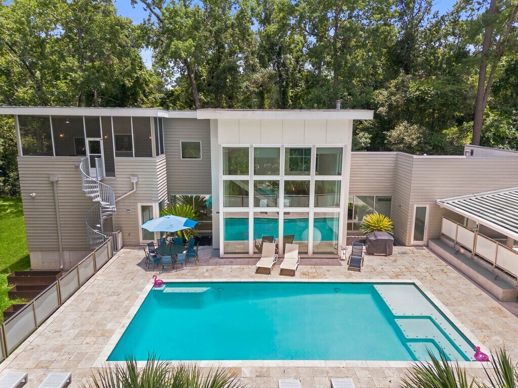 Modern luxury meets architectural brilliance at 118 Angel Leaf Road. Designed by M&A Architects and built in 2011,this 3,856 sq ft main home sits on over an acre next to a protected nature preserve. A dramatic glass façade opens to a soaring two-story living area with views of the 25,000-gallon pool,replastered 5/14/2025. Constructed with a welded steel frame,cement-fiber siding,and standing seam metal roof,the home features white oak floors,quartz countertops,custom cabinetry,Electrolux and Bosch appliances,floating staircase,and solid core doors. Includes 4 bedrooms plus an 832 sq ft private studio apartment with full kitchen and bath. A 4-car garage and hurricane-rated carport offer added security. Dual-zone NEST HVAC,tankless water heaters,and smart layout complete this fully furnished retreat. Listed price is for unfurnished rental. Fully furnished option available—price negotiable. MLS# 9717595