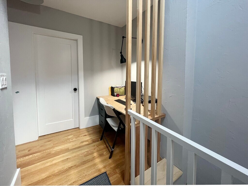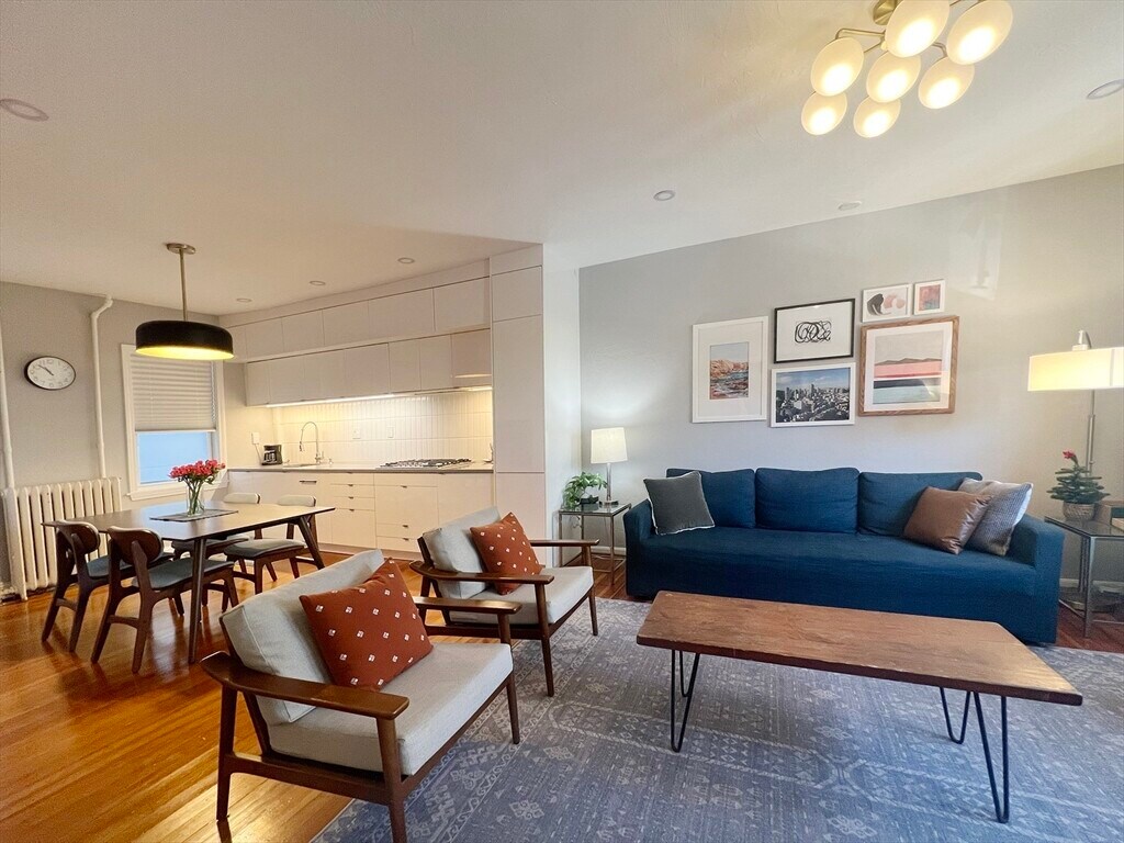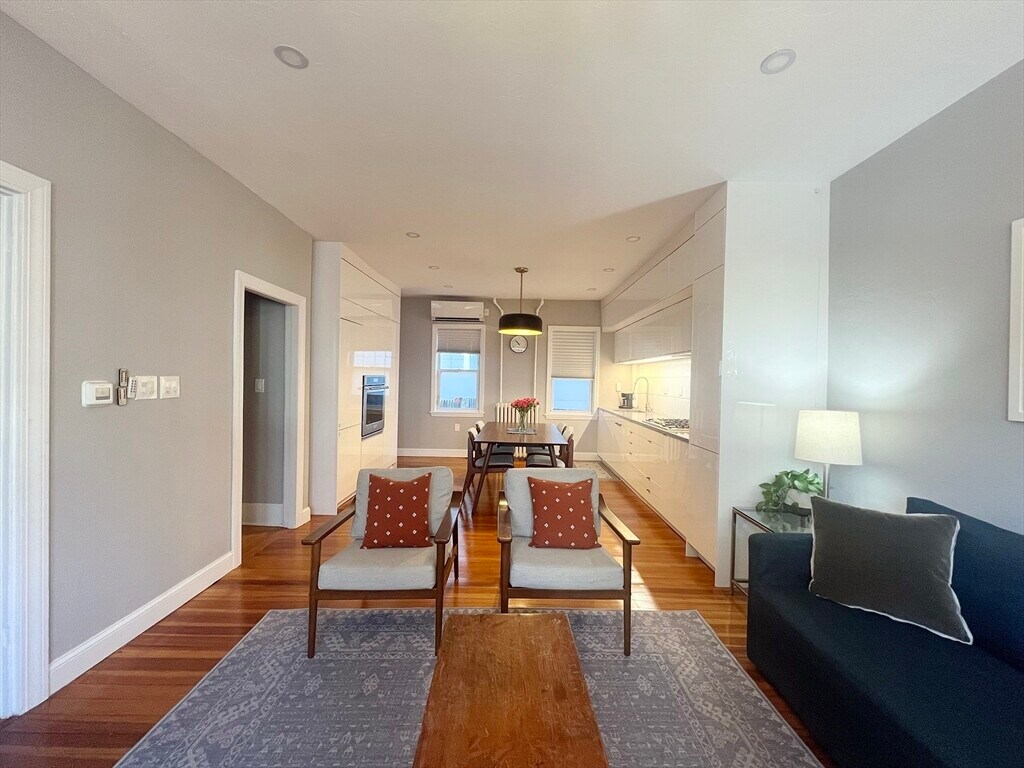 Experience modern urban living in this thoughtfully renovated single-family attached rowhome in the heart of Eagle Hill. Just blocks from the Airport MBTA station,this home blends minimalist design with original character. The main level welcomes you with an airy,open-concept living space and a newly-renovated kitchen featuring sleek cabinetry,quartz countertops,and stainless steel appliances. Original hardwood floors add a touch of timeless warmth. The second floor is bathed in natural light via a central skylight and includes a dedicated office nook. The primary suite features a custom-built closet wall,while the versatile second bedroom,and a third "bonus" room offer the perfect setup for a nursery,walk-in closet,or secondary workspace. Outside,enjoy a private back patio ideal for gardening and grilling. Located just short distance from the Angela’s Café and only two stops from downtown Boston via train,ferry,or highway. MLS# 73473147