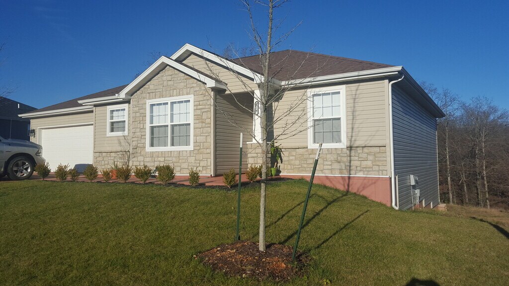 Located in the Brush Creek subdivision is this updated 5 bedroom 3 bathroom ranch style home with a full finished basement! Walk thru the front door into the living room with hardwood flooring, vaulted ceilings, and neutral paint. The kitchen/dining room feature ceramic tile, stainless steel appliances, double oven, granite counter tops, and tile back splash. The king size master bedroom suite features recessed lighting, tiled shower, double vanity and large walk-in closet with built in shelving. There are also two guest bedrooms and a full bathroom located on the main level of the home. Downstairs, there is a large family room, which would be great for entertaining. Two large guest bedrooms are also located downstairs and one of them features a large walk-in closet. There is also another full bathroom and unfinished storage room located in the basement. Other great features of this home include a deck and privacy fenced in yard. The location of the subdivision is perfect and close to restaurants and local businesses in Saint Robert. Call Walker Rentals today to schedule a showing! *Homeowner will allow pets upon approval with a $350 non-refundable pet fee per pet. Other fees may apply. *Washer and dryer included