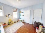 Bright and spacious 3 bed,2 bath top-floor condo with private roof deck overlooking a tree-lined street. Renovated with high ceilings,period moldings,newly refinished floors,recessed dimmable lighting,and a modern kitchen. The primary suite includes an en-suite bath and a fabulous walk-in closet that doubles as a home office with custom shelving,adding to the home's ample storage. Smart upgrades feature new AC with WiFi controls,WiFi-enabled lighting,smart locks,and in-unit laundry. Additional deeded basement and common storage plus a shared backyard. Ideally located near Brookline Village and Brookline Hills T stops,bus routes at the end of the street,the newly renovated Margaret Robinson Park,and just five minutes to Longwood Medical. Available Nov 1. Motivated,so negotiable on deposit requirements and start of lease. MLS# 73422356