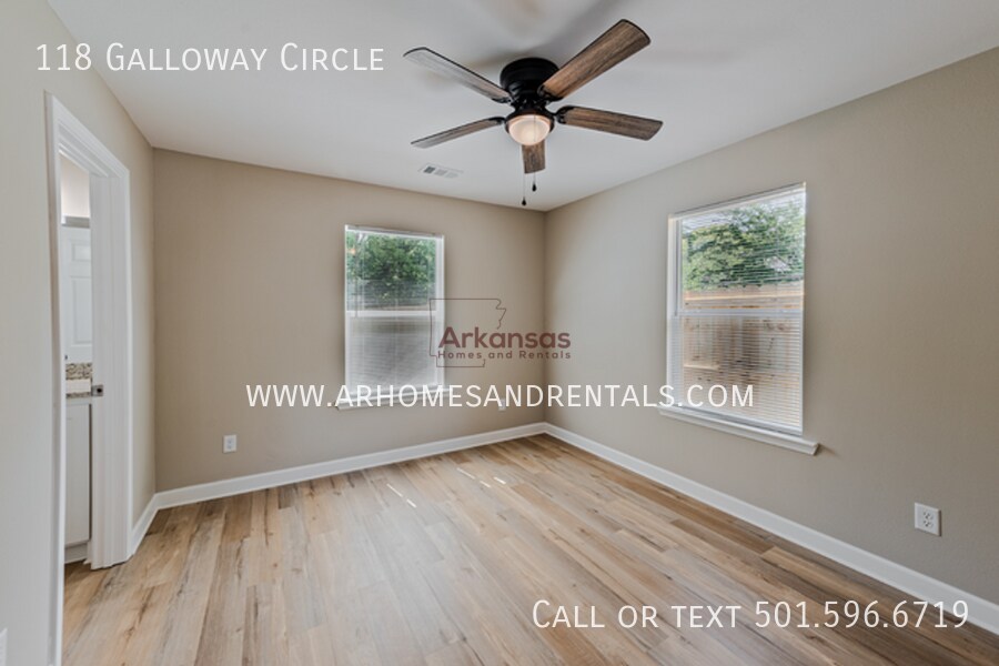 118 Galloway Circle Jacksonville, AR 72076 Don't miss out on the opportunity to make 118 Galloway Circle your new home. Contact us at: today for more information on leasing options or apply now at our direct website: Features: **New Construction!!!** - Newly constructed - Single-family home - Master bath - Granite countertops - Electric stove - Stainless steel appliances - Refrigerator - Dishwasher - Microwave - Laundry facilities - Washer and dryer connections - Ceiling fan - HVAC system - Fenced-in backyard - Porch - Patio - Off-street parking Ceiling Fan Electric Stove Electric Water Heater Fenced In Back Yard Granite Countertops Hvac Laundry Facilities On Site Laundry Unit Hookups Newly Constructed Single Family Home Updated Bathroom Updated Kitchen Washer And Dryer Connection