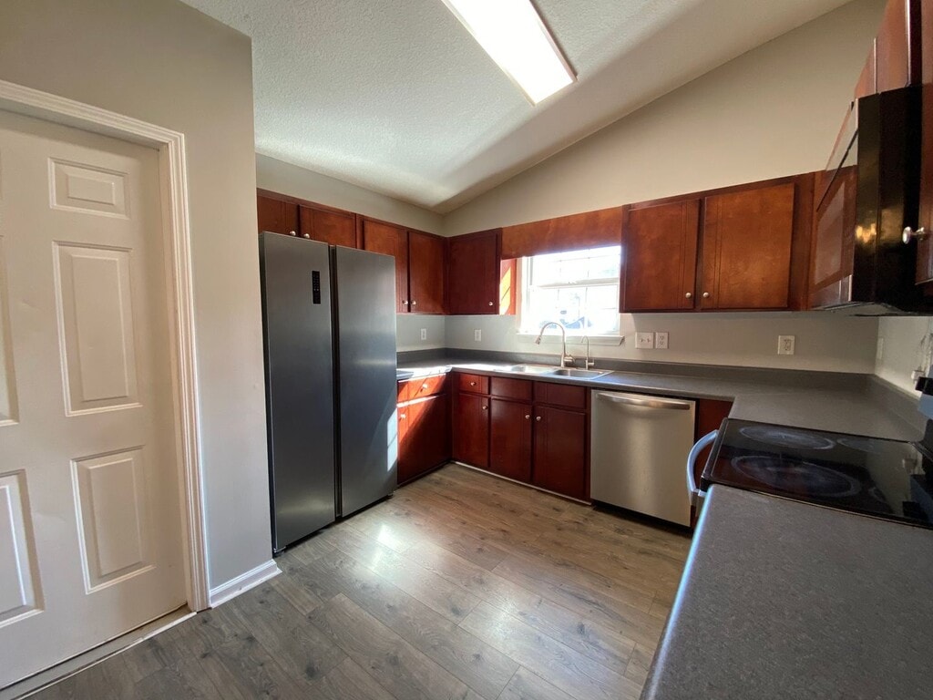 Welcome to this charming 4-bedroom, 2-bath home nestled in the picturesque Lake Vine South subdivision within The Lakes. This thoughtfully designed split floor plan boasts stunning vinyl plank flooring that gracefully flows through the main living areas, creating an inviting atmosphere. The expansive living room opens up to the heart of the home, where a spacious kitchen awaits, featuring a walk-in pantry and stainless steel appliances. Retreat to the master bedroom that includes a sizable walk-in closet, leading into a bathroom suite featuring a double vanity and linen closet. The guest bedrooms are equally impressive, offering ample closet space to accommodate all your needs. Step outside to discover a spacious backyard, ideal for entertaining or enjoying peaceful moments in nature. This beautifully situated home is conveniently located near parks, a variety of restaurants, shopping centers, schools, and the Kings Bay Naval Base and with quick access to I-95. All Kings Bay Rentals LLC residents are enrolled in the Resident Benefits Package (RBP) for $39.95/month, which includes renters insurance, credit building to help boost your credit score with timely rent payments, $1M identity protection, HVAC air filter delivery (for applicable properties), move-in concierge service making utility connection and home service setup a breeze during your move-in, our best-in-class resident rewards program, and much more! More details upon application.
