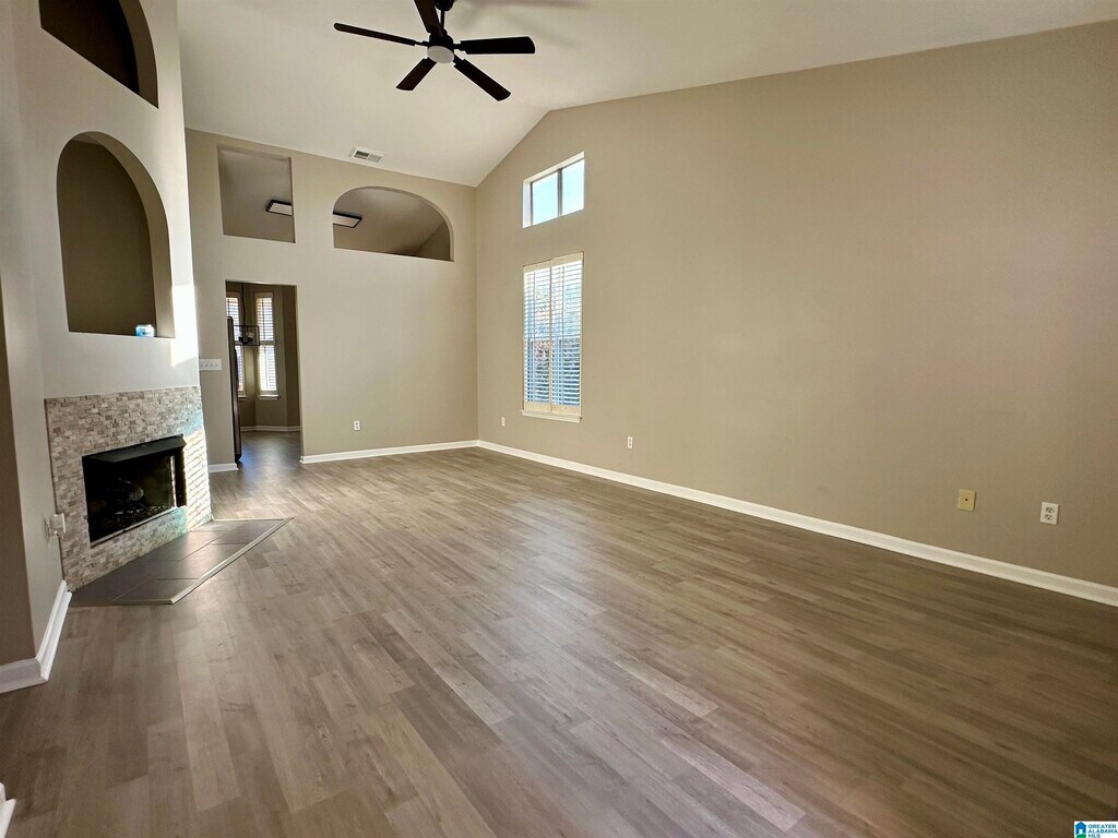 FANTASTIC 3BR/2BA HOME IN POPULAR ALABASTER NEIGHBORHOOD! Open floor plan with soaring vaulted ceilings, fresh paint, crown molding, plantation shutters, blinds, screened porch, fenced back yard, and two-car garage! Spacious living room with tall vaulted ceiling and tv niche. Eat-in kitchen with electric stove, dishwasher, & pantry! Large master bedroom with walk-in closet and adjoining master bath with two sink vanity! Two additional bedrooms with full guest bath! Covered screened porch. Please note that the fireplace is ornamental only. This one will go fast! Welcome home to 118 Marigold Dr!