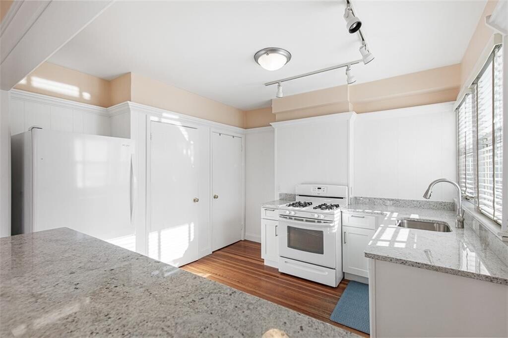 Set in Pawtuxet Village with views overlooking Stillhouse Cove,this rental offers hardwood floors throughout,light-filled rooms,and a living room with a fireplace. The new kitchen with quartz countertops opens to the dining area,and an original butler’s pantry provides additional storage. The second floor features a large bedroom with water views,a remodeled bathroom,and a primary suite with a walk-in closet and a new bathroom with a walk-in shower. The third level offers a large bedroom or home office. A deck overlooks the manicured backyard. Two off-street parking spaces and in-unit laundry are included. Set in a prime location,you can walk to restaurants,cafes,and shops and enjoy quick access to downtown Providence. MLS ID 1401890
