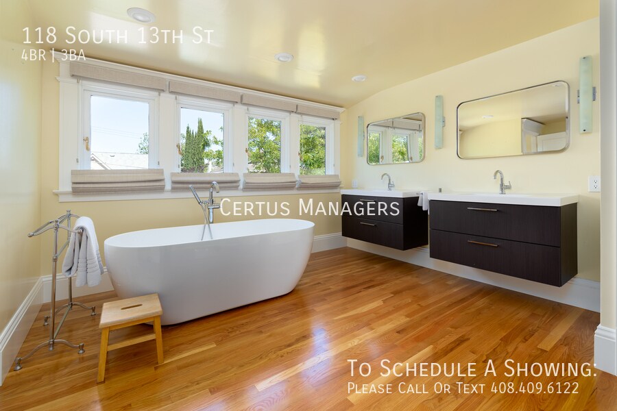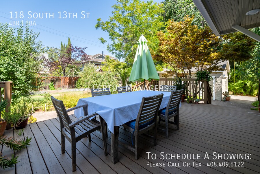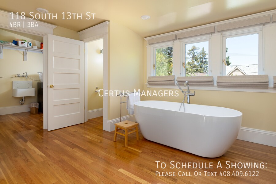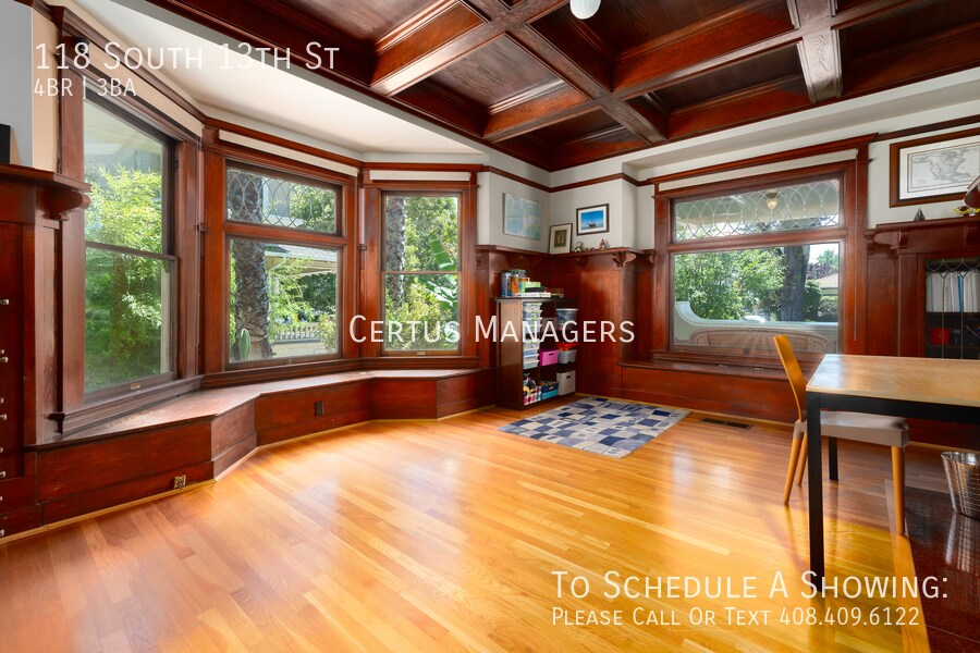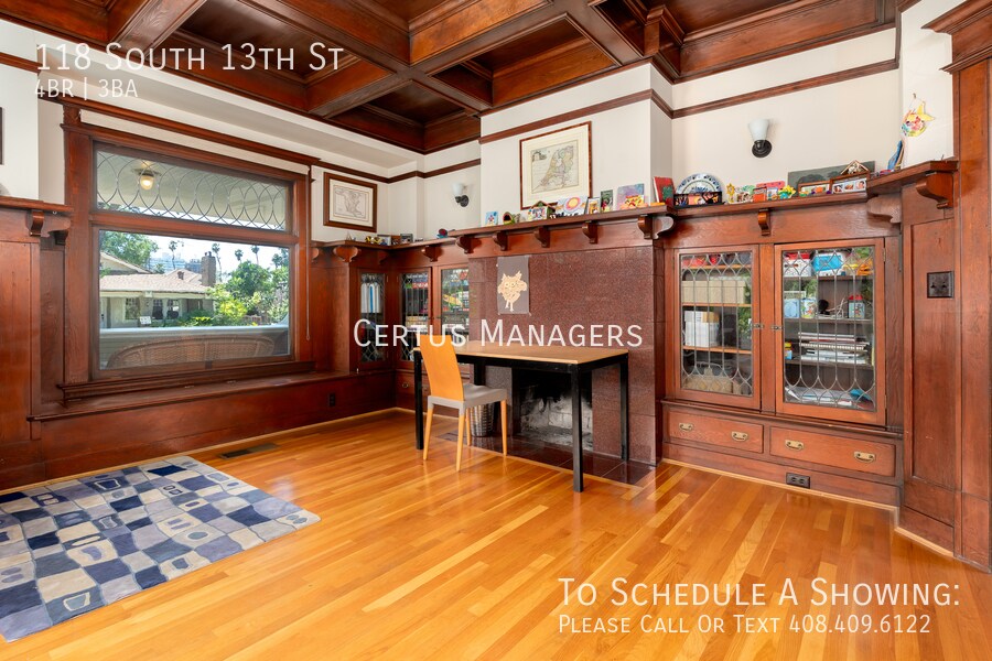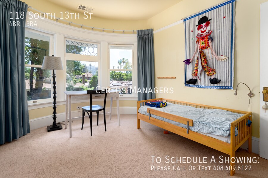 Open House: January 25, 2026 from 4:00 PM to 6:00 PM. Text the number in the pictures to schedule your time slot. Make this large, stately Victorian your next home! Lovingly restored and maintained, with modern touches and finishes everywhere, this home has 4 large bedrooms, a huge updated kitchen with a center island, a dining area, and a living area. All these rooms are bright, with lightly colored walls, and huge windows letting in a stream of sunshine. There is also an office space in original condition, with elegant dark wood flooring and walls. Finally, there is a large semi-finished basement. Note that this home is offered *unfurnished*. The furniture in the pictures is from a previous occupant. The backyard is spacious and well-groomed, with plenty of fruit trees, and is ideal for relaxing and playing. Further details below ... The front porch has curved windows and restored hardwood floors. The entryway opens to the kitchen, which has been extensively upgraded. There is a large center island, seemingly acres of countertop space, modern appliances, and an area perfect for eating breakfast. Next to the kitchen is a large dining area, and on the ground floor there is also a living area with old-fashioned curved windows. Also on the same floor is the office and a half bath. Upstairs you'll find the four bedrooms, plus two full bathrooms. The main bedroom is large and overlooks the back yard, and the room's bathroom is accessed via a large walk-through closet. Qualifications: -- Verifiable income of 3.5X rent -- Credit score of 720+ -- Clear background and eviction check -- Landlord references -- One month deposit The application process is via Zillow, and we will sign a standard California Association of Realtors lease agreement. We require tenant insurance, which typically costs between $15 and $20 per month. Owner pays for gardener; tenant covers all other utilities. No pets or smoking. DRE 01404898