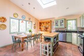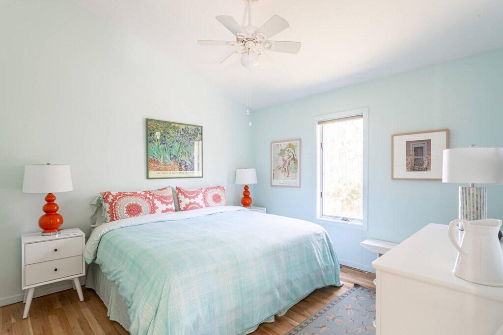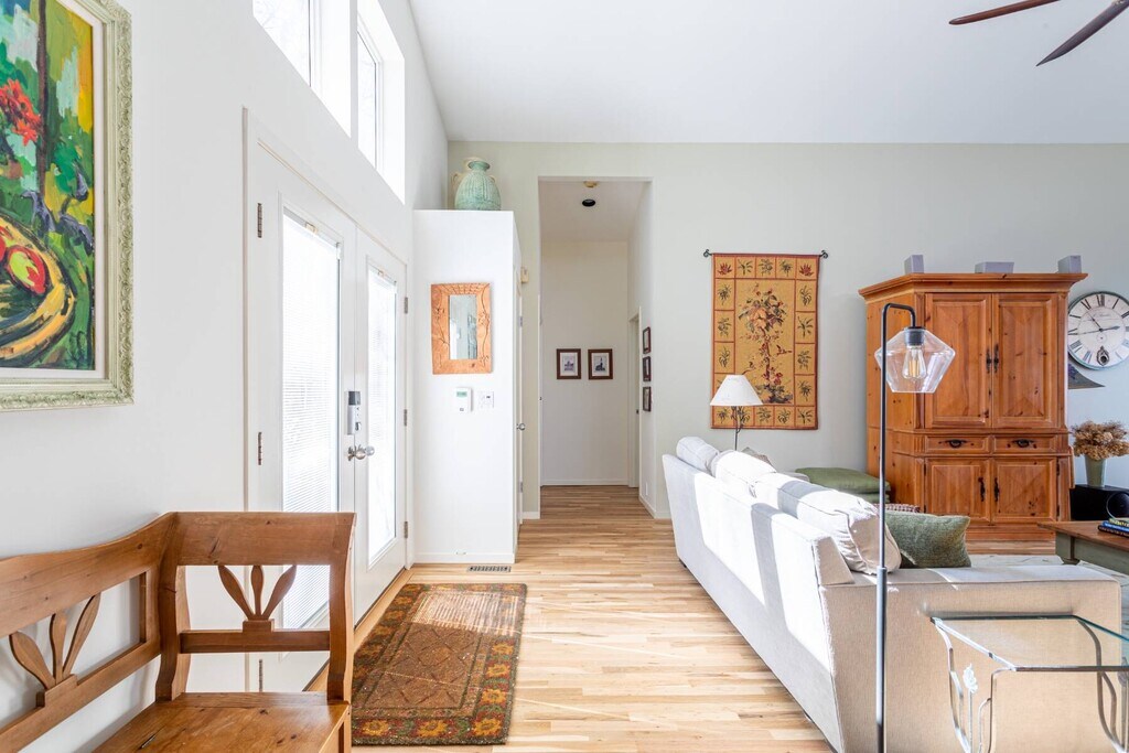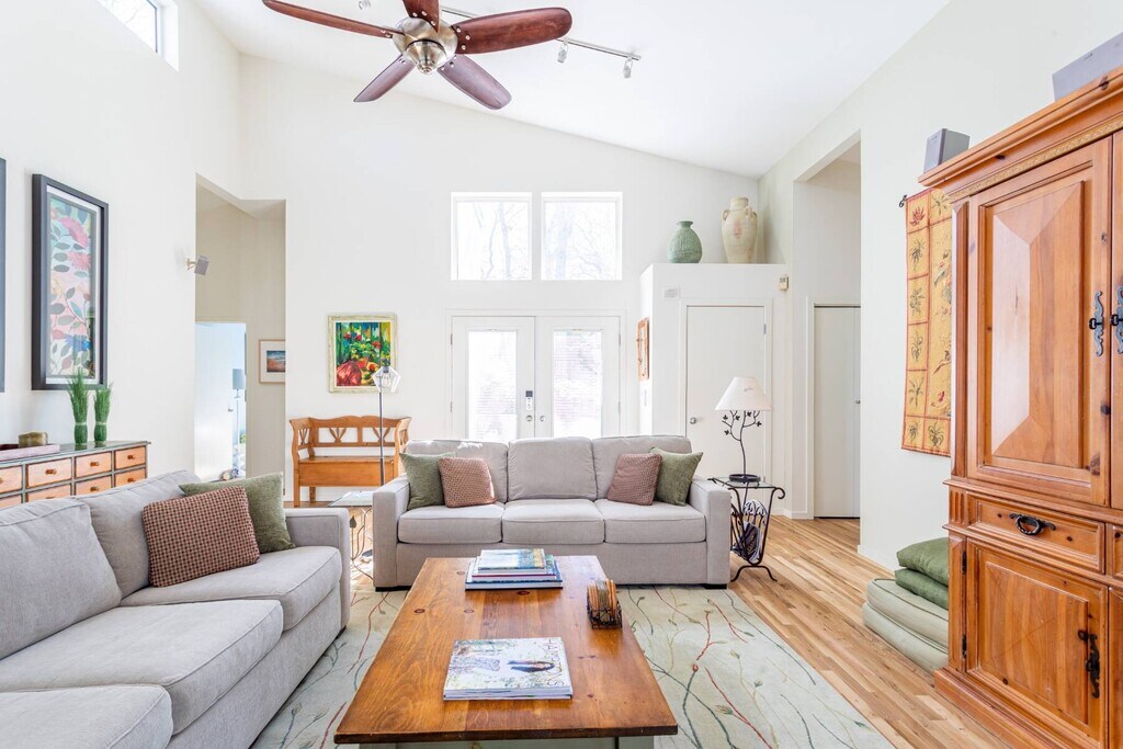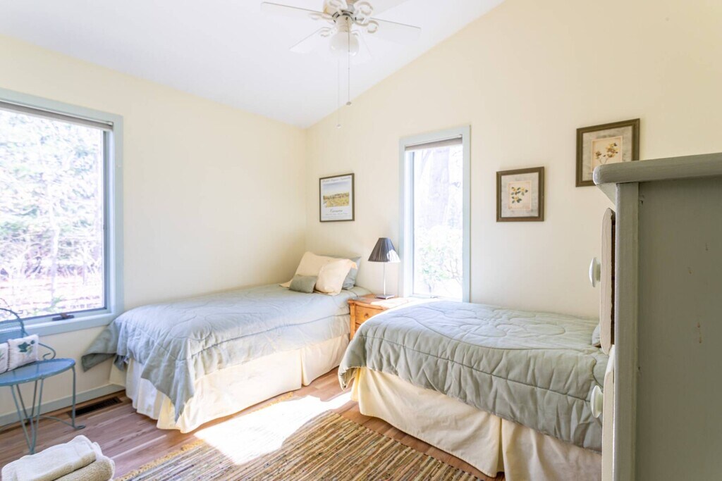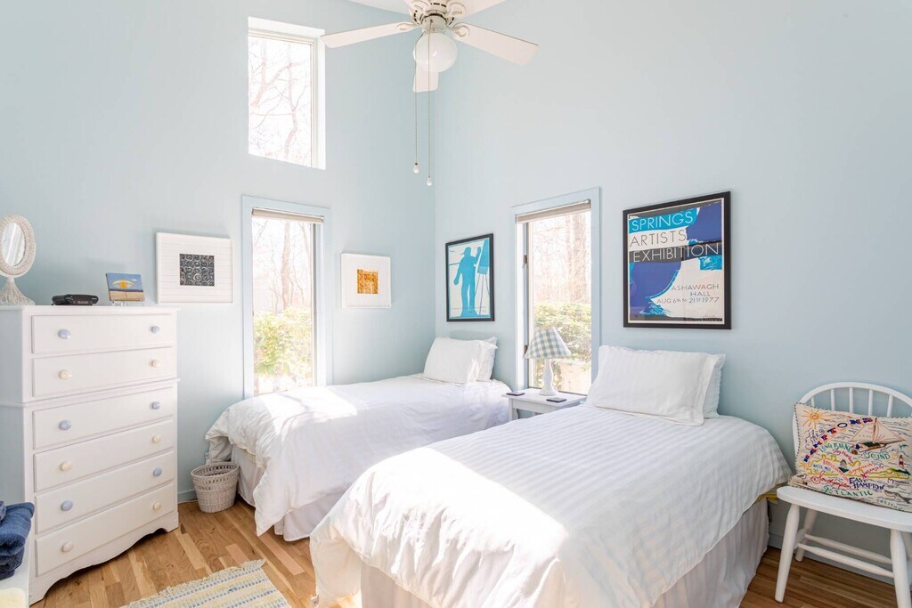 This immaculate home is a one level contemporary located on a private, wooded lot. It is tastefully furnished and has a spacious, sunlit living room with a cathedral ceiling and brick fireplace. The living room is flanked on one side by the private master bedroom suite with king-size bed, en suite marble bath, phone, and TV and on the other side by three additional bedrooms and shared bath. The newly renovated kitchen with skylight has granite counter-tops, stainless steel appliances and terra cotta tile floor. In addition to central air conditioning, the living room and each bedroom has a ceiling fan. The house has a large sunny upper deck, accessed by four sliding glass doors, with comfortable patio furniture and grill, and a sunny lower deck with heated in-ground swimming pool surrounded by beautiful, flowering landscaping and an enclosed outdoor shower. ALL ELECTRIC AND GAS FOR POOL INCLUDED IN PRICING [[Rental Registration # 24-316]] EH RR #: 24-316 Rental Terms: August - Labor Day: $35,000 July: $30,000 Other / Short Term - 5/22/2026 - 6/22/2026: $17,000