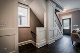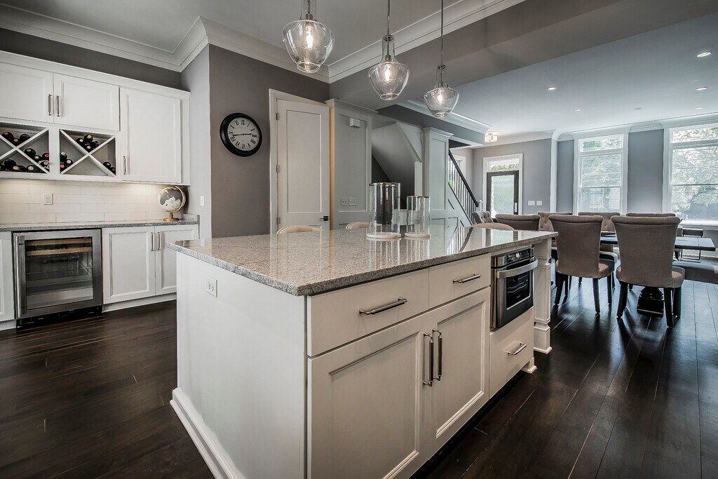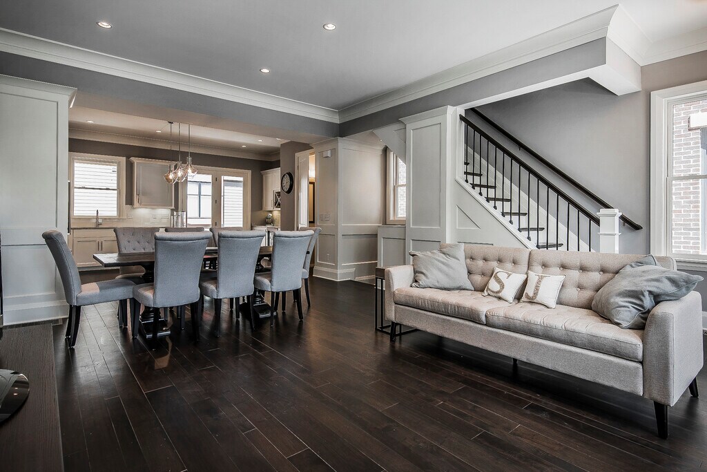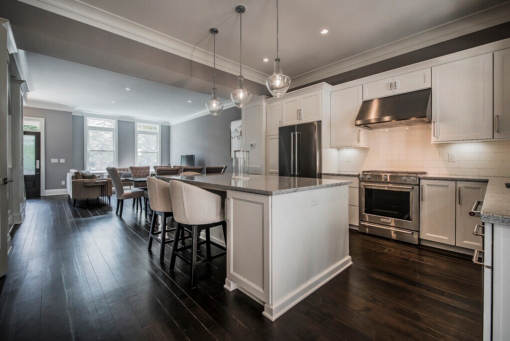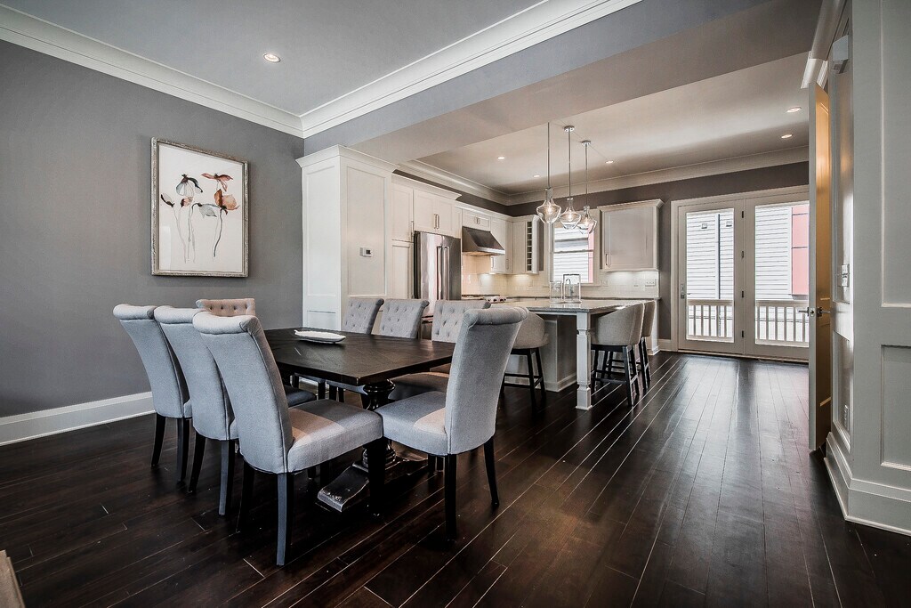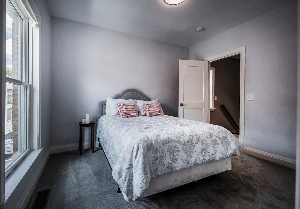 Luxurious, new build, contemporary, 3-story, brownstone Short North & Victorian Village townhouse with attached 2-car garage for rent located one block off of Short North and High Street. It is an end unit and includes 2008+ square feet of living space with 3 bedrooms and 3.5 baths with the 3 full bathrooms attached to each bedroom. There are tons of premium upgrades. Every finish is high end from triple-layer, custom crown molding and 10-feet ceilings in the main living space to the stainless steel Kitchen Aid appliance to the custom built-in microwave drawer in the over-sized island (51 x 93 inches). Gorgeous granite countertops and classic subway tiles in kitchen and bathrooms. Premium wide plank walnut wood flooring throughout the main floor. Upgraded with bar area and dedicated beverage fridge adjacent to the kitchen. The home is smart-home connected with a digital front door lock, garage door, and thermostat that can all be controlled from your phone from anywhere. The open, modern floor plan creates a wonderful space with tons of natural sunlight. There are custom $1000 blackout blinds in the master bedroom for sound sleeping. There is a 240v electric car charger in the attached 2 car garage. Breathtaking exterior designed to emulate Victorian homes with private steps leading up to the home, iron railings by Fortin Ironworks, and premium build for superb sound proofing between units. Private balcony with hookup for gas grills and fireplaces. This one of a kind, unique property is located just a block from High St and steps away from all of the superb restaurants, coffee shops, retail boutiques, bars, and amenities in the rapidly growing and blossoming Short North Arts District in Columbus, OH. It is far enough to avoid the noise and traffic yet close enough to walk nearly anywhere. Perfect central location is within minutes of downtown, Ohio State, Grandview, Italian Village, German Village, and Clintonville. Get to all the major highways within 5 minutes. Central location means reverse traffic to the suburbs. It is nearly impossible to find a similar rental in this area with these features! Rent includes snow and trash removal and recycling pickup. Preference given to longer leases such as 2 years or more. Fully-furnished option is also available. Please contact us to learn more! The official website for this exclusive, 10-unit development is 3D matterport and walkthrough - Additional videos -