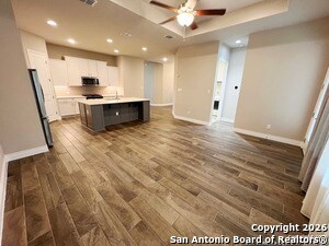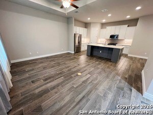 3 Bed 2 Bath 1769 sq ft Single Story Home in Kinder Ranch. High 10 ft Ceilings. Wood-like Ceramic Tiles in the main areas, Carpets only in the bedrooms. Formal Dining Room. Open Kitchen with Quartz Counters, White Cabinets, Breakfast Bar, Walk-in Pantry, Farmhouse Sink. Appliances include Stainless Fridge, Gas Stove, Microwave, Dishwasher. Washer and Dryer included. Large Living Room. Large Primary Bedroom with Walk-in Closet. Primary Bath with Garden Tub, Separate Shower, Dual Sinks. Fenced Yard, Covered Patio with connection for a gas grill. 2 Car Garage with Opener, Tankless Gas Water Heater, Sprinkler System. Community Pool, Playground, Jogging Trail, Basketball Court. Close to 281, Shopping, Schools.