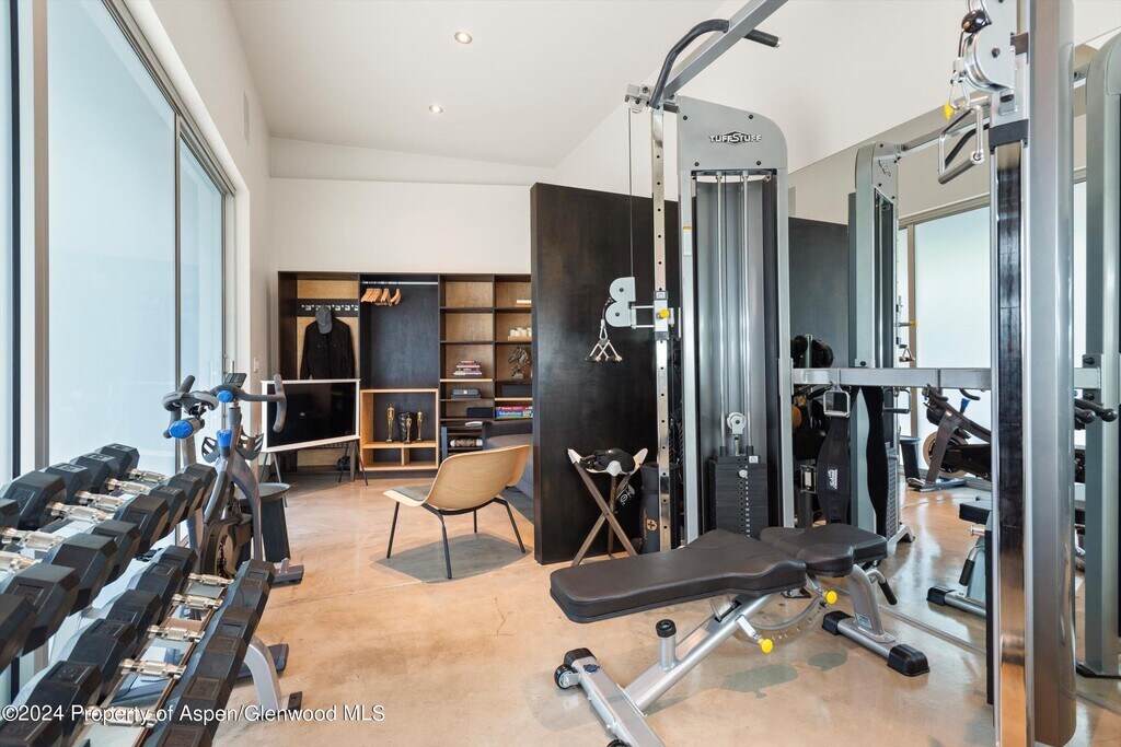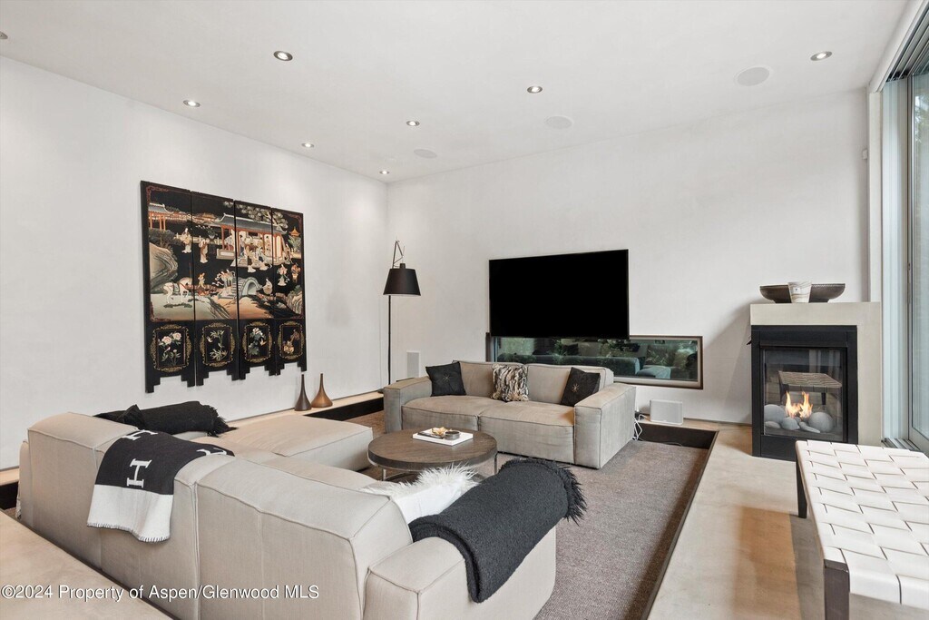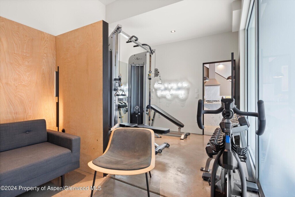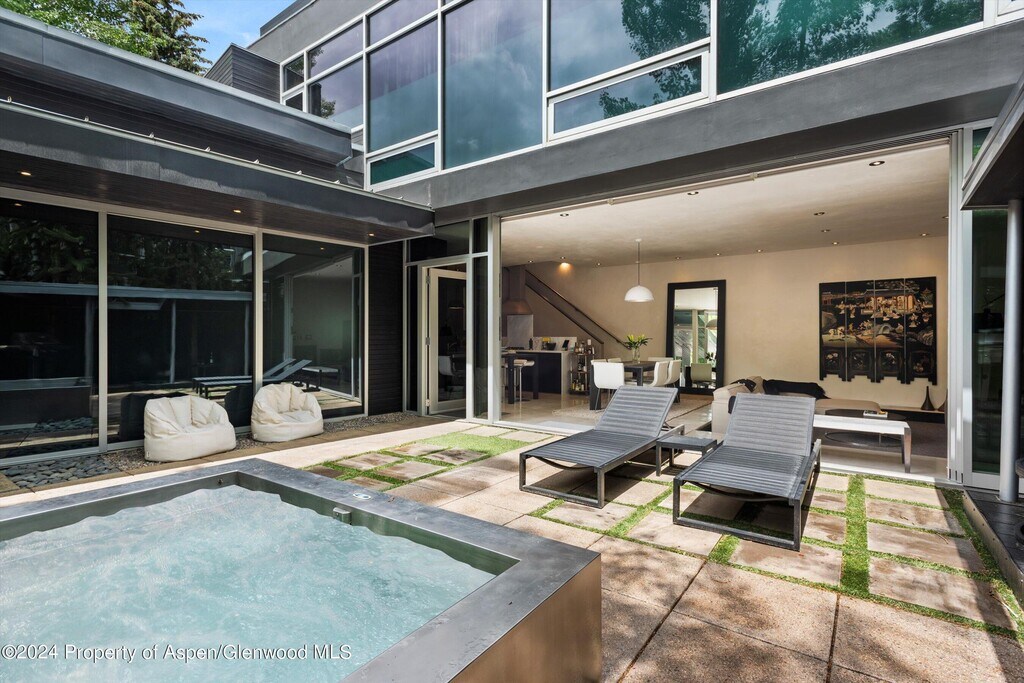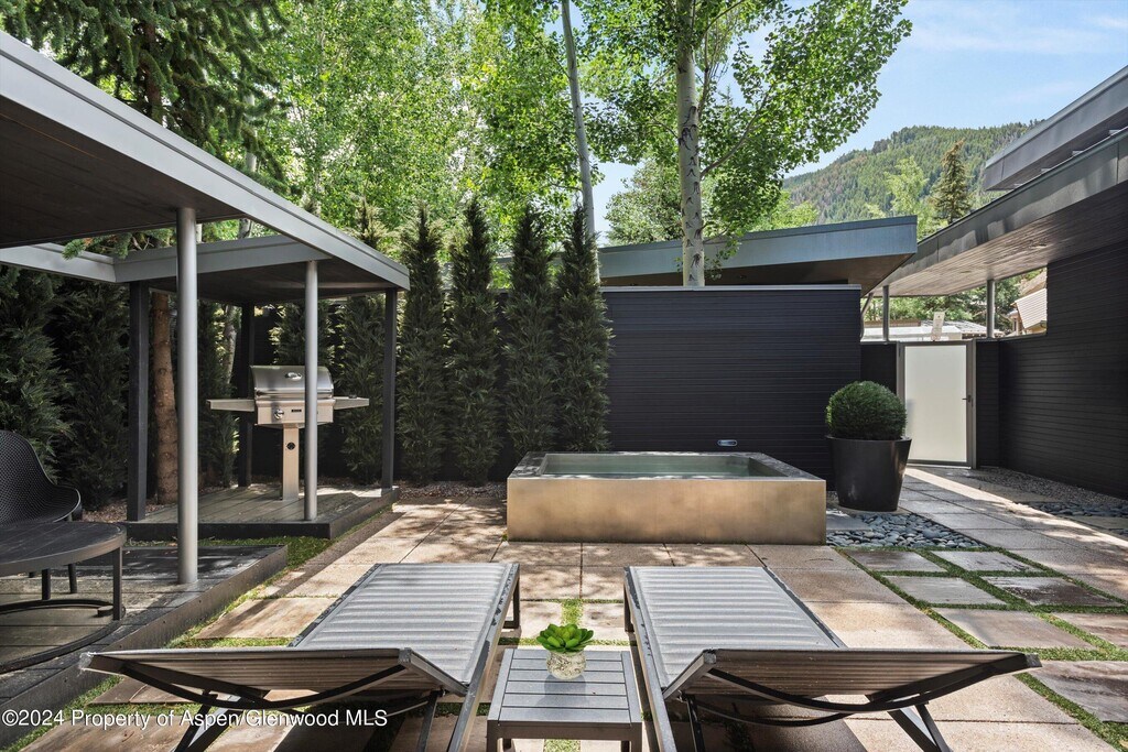 Welcome to 1180 Dale Avenue,located only steps away from the Roaring Fork river and downtown Aspen. As you walk through the private front gate,you enter a zen courtyard- with a stainless steel hot tub,gas grill and elegant cabana. As you continue on through floor-to-ceiling sliding glass doors,you enter a stunning,sleek,contemporary,and luxurious living room. Lovingly and thoughtfully designed,the indoor/ outdoor space is perfect for hosting gatherings or enjoying the many private amenities available to residents. Inside,the home is equipped with top-of-the-line appliances,luxurious furnishings,a commercial quality home gym,a gas fireplace,a Japanese soaking tub,Central A/C & 1-car garage. The large primary suite is complete with a walk-in closet,en suite bathroom,and desk/ workspace. The second bedroom has a large closet,en-suite bathroom and desk,while the 3rd bedroom & gym are part of a shared flex space with a queen sized sleeper sofa,additional closet space,and a partial dividing wall for added privacy and with 3/4 bath close by.