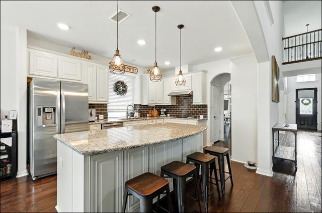 Welcome to your new haven in Mckinney! This stunning residence offers a perfect blend of modern amenities and timeless charm. Nestled in a desirable neighborhood. Custom South facing 5 bedroom, 4 full bath home with 3 living spaces in desirable Prosper ISD. Spacious formal living and dining rooms off the entry with tray ceiling detail and big bright windows. Gorgeous easy to maintain luxury engineered hard wood floor through out the main living areas downstairs. Open floor plan with large central family room featuring floor to ceiling corner stone fireplace. Eat in kitchen with lots of counter space, white shaker cabinets, wood floors and built in appliances. The kitchen also boasts a large walk in pantry, island with breakfast bar and a butlers pantry to the formal dining room. Office downstairs could also be used as a 6th bedroom. Oversized primary suite down with huge walk in closet and en suite bathroom with dual vanities, garden tub and shower. Walking distance to elementary & beautiful community park with pool, splash pad, playground, walking trail, tennis court, zip line, work out stations and more!