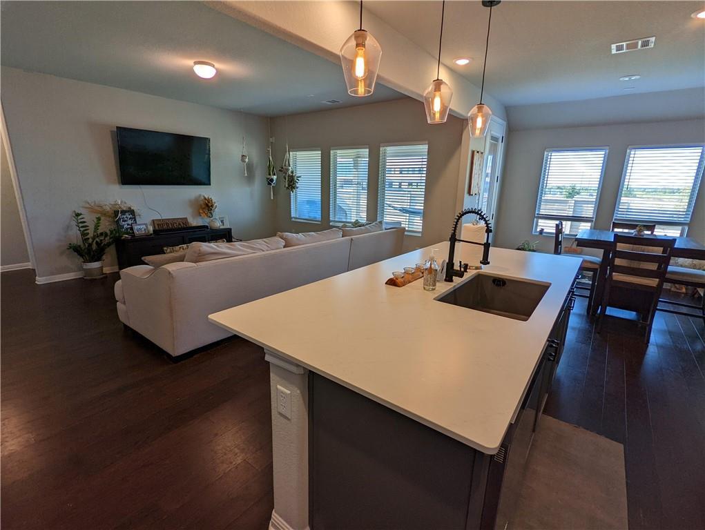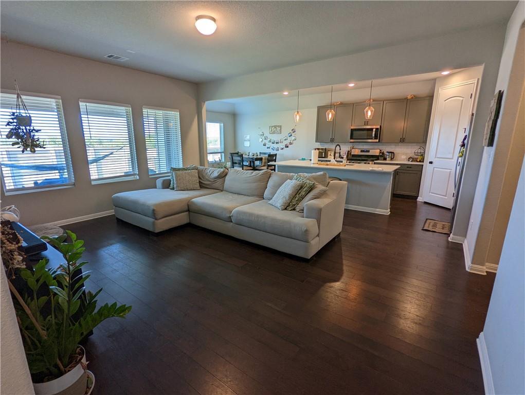 Great location for a wonderful home! House built in 2020! A premium entertainment space with open plan for living, dining, and kitchen. Modern, high end finishes with gray cabinets and light quartz countertops, hardwood-like flooring in the entry, kitchen/dining and family room. MIL plan separates the primary bed/bath from the others. No neighbor directly behind you, with the elementary school across the street! This ideal location is close to Austin, highways, and major employers like TESLA, Samsung, Apple, Applied Materials etc.