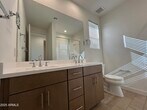 Welcome to this stunning 4 bedroom,3.5 bathroom home in the highly sought after guard gated,golf course community of Sterling Grove ready for immediate move-in! This home features wood look ceramic tile floors and upgraded carpet throughout,as well as quartz countertops in the kitchen with a beautiful waterfall edge. The kitchen and bathroom cabinets are upgraded with soft close drawers,and stainless steel appliances complete the modern look. Recessed lighting can be found throughout the home,adding a touch of elegance. The primary bathroom boasts a luxurious walk-in shower,while the primary bedroom includes a spacious walk-in closet. Enjoy the convenience of upgraded 2'' wood blinds on all windows. Situated on a corner lot,this home also offers artificial turf,concrete pavers and an extended covered patio for outdoor enjoyment. After enjoying the inside of the home,step outside and enjoy the luxurious amenities; destination-style dining,luxurious spa services,state-of-the-art fitness studio,resort-style pools,and a wide range of sporting activities,including our golf course,tennis,pickleball,and bocce ball all without leaving the neighborhood.