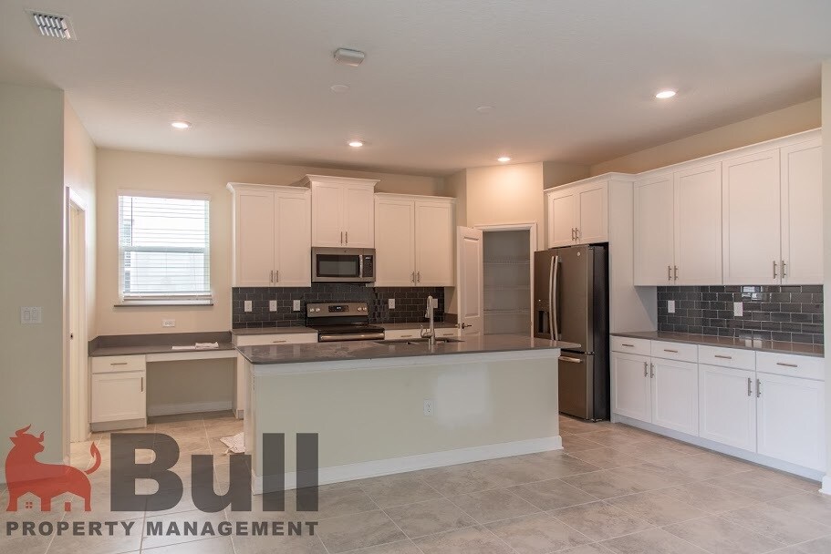 Fabulous and spacious two stories, 5 bedrooms plus an office room / 3 baths. The first floor offers an open and functional layout featuring a formal dining room, beautiful open kitchen with brand new appliances, 42" cabinets, huge island and granite countertops, family room, also on the first floor a guest suite and a full bath. On the second floor the master suite with walking closet and full bath featuring a garden tub, separate shower, and double sinks, plus three more bedrooms that share one spacious bathroom with double sinks. This beautiful home has solar panels that help you to keep the electric bill low and is in the desirable Storey Park! It is one of the newest neighborhoods in the Lake Nona area only minutes away from Medical City, Orlando Airport, Highway FL 417, US Tennis Association, many restaurants, and some of the BEST SCHOOLS in the area. Storey Park HOA includes basic cable, high-speed internet, resort-style pool, fitness center, splash park, tennis courts, among other amenities. Minutes from Orlando International Airport, and Close to Disney World, Islands of Adventure, Universal Studios, Sea World, and other Orlando theme parks. This is your opportunity to live in a home in the fastest-growing area of Orlando!