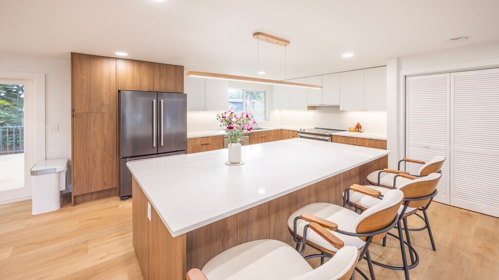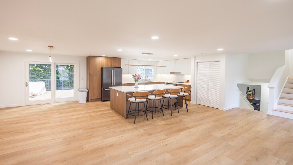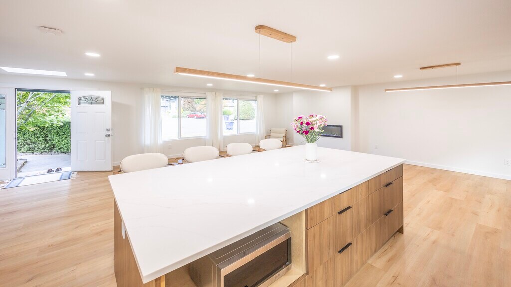 Welcome to your dream home! This beautifully remodeled house is nestled on a quiet cul-de-sac in the desirable Queensgate neighborhood and highly rated Northshore School District. Enjoy spacious living on a level lot with a private, fully fenced backyard—perfect for relaxation and entertaining. ## Features & Upgrades Brand new luxury waterproof vinyl flooring Fresh siding and new paint inside and out Expansive new deck—ideal for gatherings and outdoor enjoyment Modern kitchen with new cabinets, a large island, and quartz countertops New luxury electric fireplace Fully remodeled bathrooms Hue Smart lighting system with customizable themes, colors, and entertainment options New heat pump and furnace for year-round comfort—stay cool in summer and warm in winter Two-car garage plus a long driveway for ample parking Tesla charger installed Ring outdoor security cameras August smart locks High-speed internet modem and WiFi router included Two sheds offering spacious storage ## Location Highlights Easy access to I-405, public transit, The Village at Totem Lake, and UW Bothell Close to Woodmoor Elementary, Northshore Junior High, parks, and walking trails ## Lease Terms 24-month lease: $4,150/month 12-month lease: $4,250/month One month as a security deposit. Utilities (Electric, Gas, water, sewer, Garbage, Internet, Cable) are paid by renter. No smoking Pets considered on a case-by-case basis with a $500 non-refundable pet deposit and a monthly pet fee $350 administrative fee due at move-in Credit and background screening due with application- Background check charges for over 18 years, non-refundable. Income proof and 2 references.