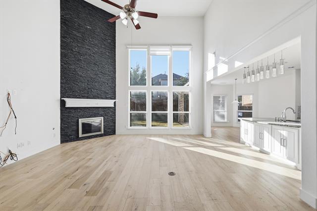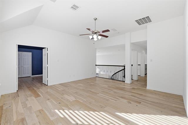 Beautiful home in Mckinney with popular Prosper isd schools has been prepared for a new tenant. Home is beautifully cared for and has 5 bedrooms + study and 3.5 baths. Sought after floor plan with tall ceilings without a slope in family room different from other homes in the neighborhood. Stacked formals invite friends into the home, Bright white walls have been touched up, beautiful light colored wood floors give a modern and updated look and feel with absolutely no carpet in the home to mess up. Blinds in the family room let a lot of light in. Kitchen is updated with beautiful granite counters and wonderful light fixture on the island. Washer, Dryer and Refrigerator are included along with built in speakers through out the home. Media room is spectacular with a wet bar and a state of the art speaker system and a huge screen. Primary Suite downstairs with 4 secondary bdrooms and 2 baths up. Gameroom overlooks the downstairs and is spacious. This home is a must see with it's corner location as well as an outdoor kitchen and the covered patio with a large backyard.
