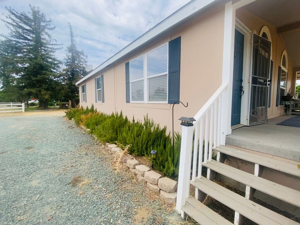 This is your rare opportunity to enjoy serene country living in this beautiful 1,170 sq. ft. manufactured home, in Herald, a small town nestled between Stockton and Sacramento, less than a 10-minute drive to Highway 99. Built in 2005, this two-bedroom, two-bathroom gem offers an inviting open floor plan. The spacious family room flows seamlessly into the kitchen, complete with a dishwasher, garbage disposal, and 'as-is' refrigerator. The primary suite is a true retreat, featuring a custom-built closet and a luxurious bathroom complete with stone tile walk-in shower, back lit anti-fog mirror, and additional storage shelves. Soak in the soothing sounds of nature on the front deck/porch. With a dedicated laundry room equipped with convenient folding table/desk, this home is designed for both comfort and functionality. Experience the best of country living with all the modern amenities you need—this charming home is ready to welcome you! Nine-month lease. Tenant pays a flat rate in the amount of $200 per month for water, sewer, and trash (well and septic). Tenant is responsible for electric services and internet. Tenant must have their own P.O. Box for receiving mail. Tenant responsible for grass and landscaping immediately around home. Tenant has option to lease two fenced fields of land (approx. 1.25 acre) for additional $300 per month, approval required for animals/livestock and will require a livestock addendum on renter's insurance policy. No smoking. Tenant must maintain renter's insurance of a minimum of $300,000.00. Co-signers accepted. All Realty Roundup residents are enrolled in the Resident Benefits Package (RBP) for $45/month which includes quarterly HVAC filter delivery, liability insurance, credit building to help boost the resident’s credit score with timely rent payments, up to $1M Identity Theft Protection, move-in concierge service making utility connection and home service setup a breeze during your move-in, our best-in-class resident rewards program and much more! To get the most out of the RBP residents can upgrade into our premium RBP package for ($59.95/month) which includes on-demand pest control. More details upon application. PROPERTY TOURS: 1) It is recommended that you view the online virtual tour and photos of the home. 2) Please drive by the home to make sure it's a neighborhood you like. 3) Submit your completed application online at www.realtyroundup. com 4) Upon approval for the property, you must then view the property with one of our staff, prior to paying your security deposit.