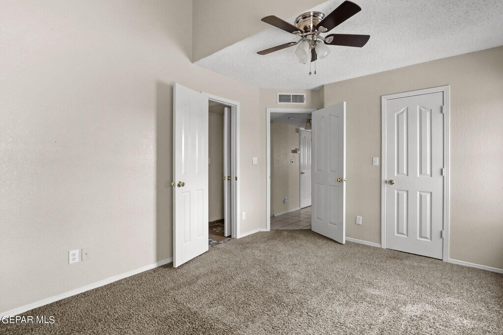 3 bedrooms home,2 baths. Formal living room with fireplace. Good size kitchen and Dining areas. Primary bedroom downstairs. Ample loft area upstairs with extra closet space. Good size yard with storage shed. Two car garage. Sun room. Must see!! Come and make this house your home. Located close to schools & parks. By Pebble Hills and Saul Kleinfeld Dr. Ft. Bliss is only 15 minutes away. EVAPORATIVE AC. AVAILABLE 12/01/2025.