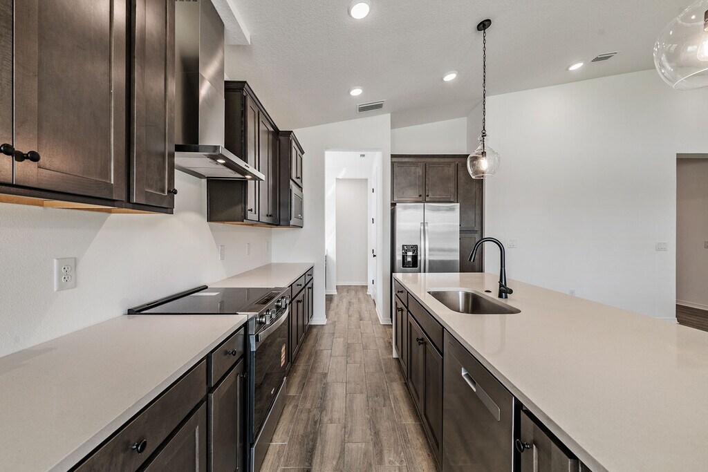 You'll love this brand-new home built with the utmost care by Inland Homes! A fabulous 4 bedroom, 3 full bath, single family home in the beautiful Isles at Bayview! With gorgeous water views of the pond, you'll love the scenery as well as the open and inviting floor plan. The home's exterior is of Spanish architecture and offers a modern feel. The lovely Foyer entrance leads to a tri-split floorplan. Two guest bedrooms can share a full & the third guest bedroom has an adjacent full bathroom. The bathrooms are pristine with beautiful décor and fixtures. The primary suite is spacious with water views. The primary bath features dual vanities, a walk-in shower, soaking tub, and a large walk-in closet. You'll appreciate the oversized living room with vaulted 14' ceilings, extra windows, and light-filled welcoming space. The Kitchen is gorgeous, a Chef's delight with a large kitchen island, quartz countertops and waterfall design, upgraded Whirlpool Appliances with a Range and Range Hood, Side by Side Refrigerator, Microwave and Wine/Beverage Refrigerator in the Butler Pantry. A walk-in pantry has ample storage space and a featured space next to the Butler Pantry is great for pets, or a flex space! The laundry room is equipped with a Top Load Washer and Front Load Dryer and nice storage space. You will also love outdoor living with a covered patio and beautiful water views. The newly landscaped yard will soon be fully fenced. A two-car garage is squeaky clean & has easy to install storm shutters. This home with its gorgeous décor and energy efficiency is a dream! Isles at Bayview has a beautiful community pool, clubhouse, playground & dog park and is in a great Parrish location close to I-75, south of Tampa, NE of Bradenton/Sarasota and east of St. Petersburg, a great spot on Florida's west coast!